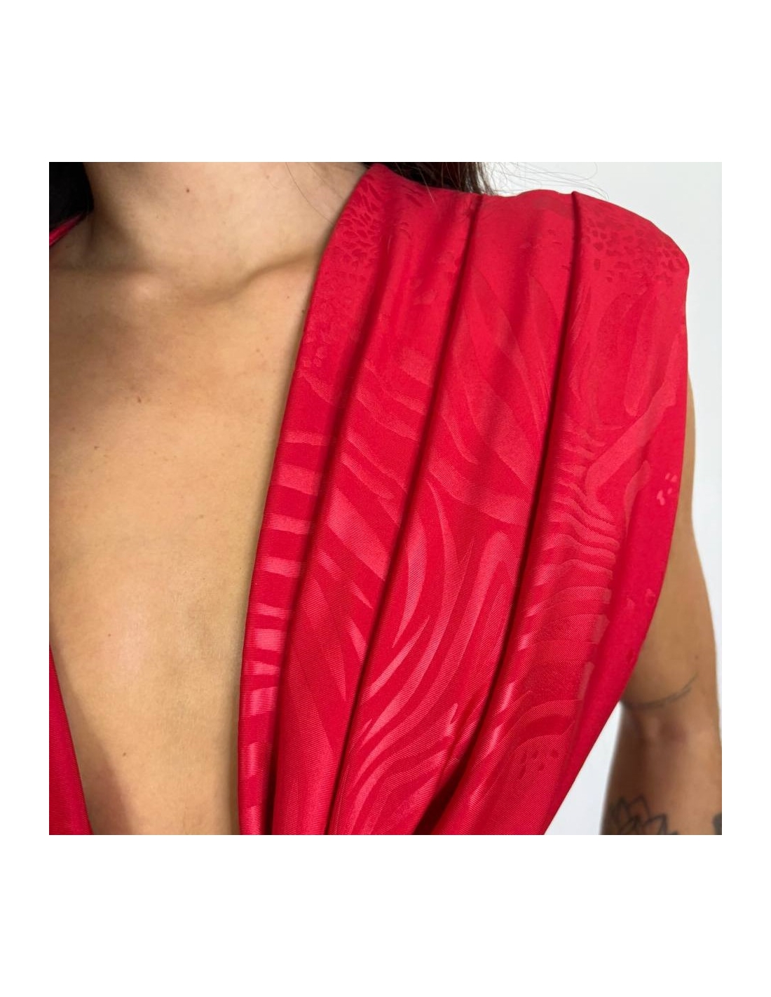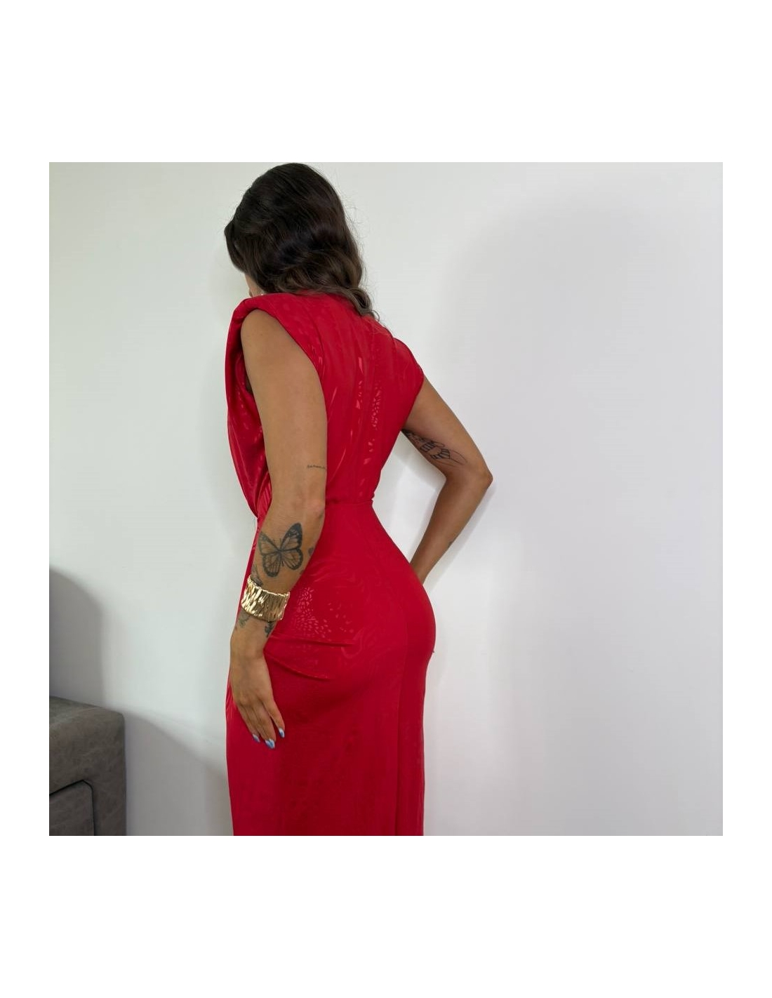 Vestido evento nudo. Con hombreras. Nudo en parte delantera y abertura. Midi. Fruncido. Talla única