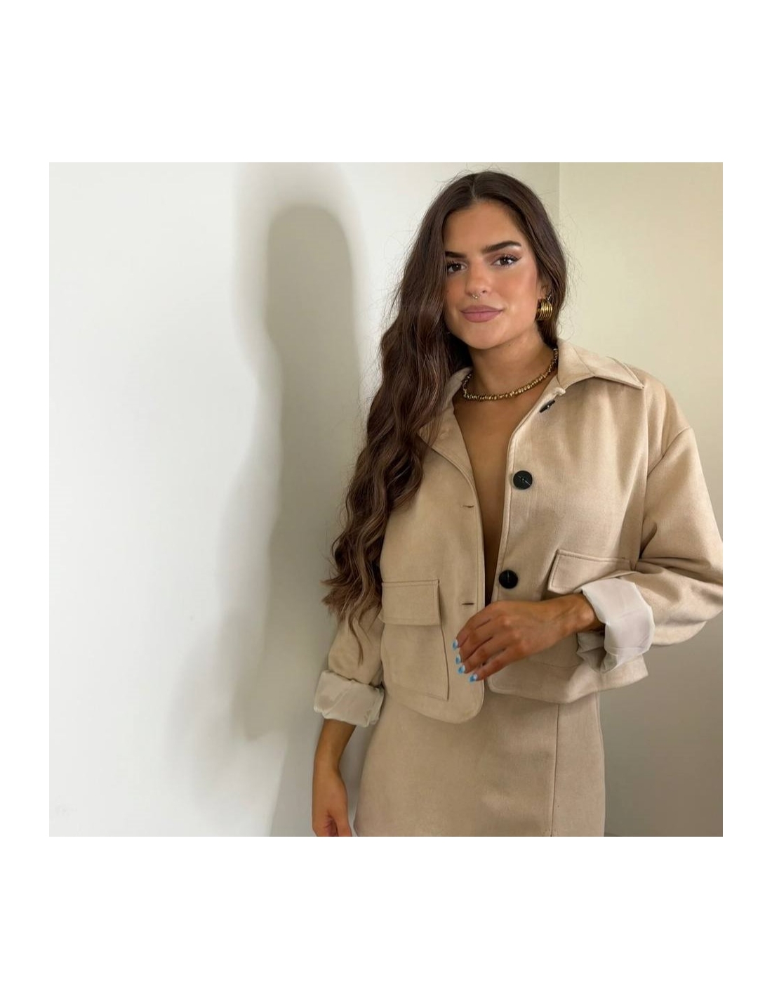 Chaqueta antelina en tono beige abotonada. Oversize. Forro interior. Talla única.