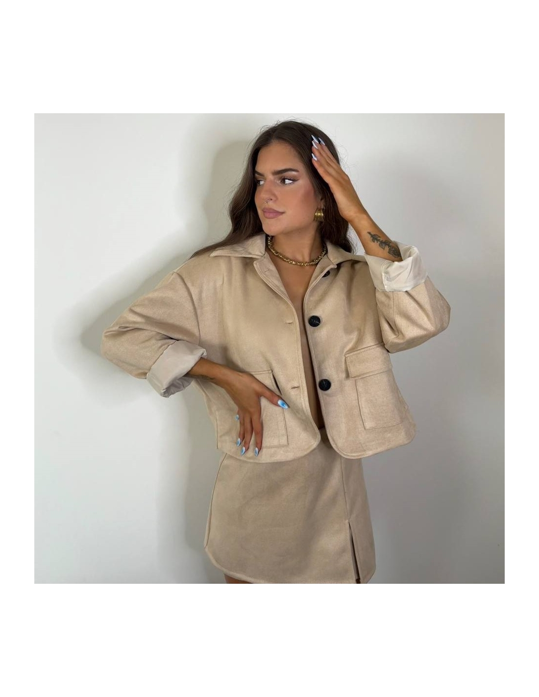 Falda pantalón antelina en tono beige. Cintura elástica. Talla única.