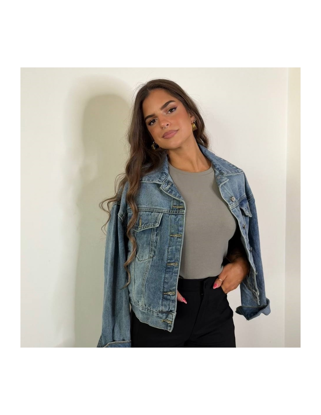 Chaqueta vaquera de manga larga. Cuello de solapa. Cierre delantero abotonado. Talla única