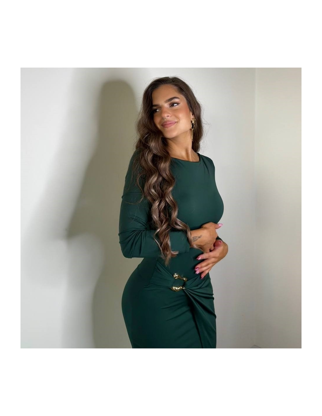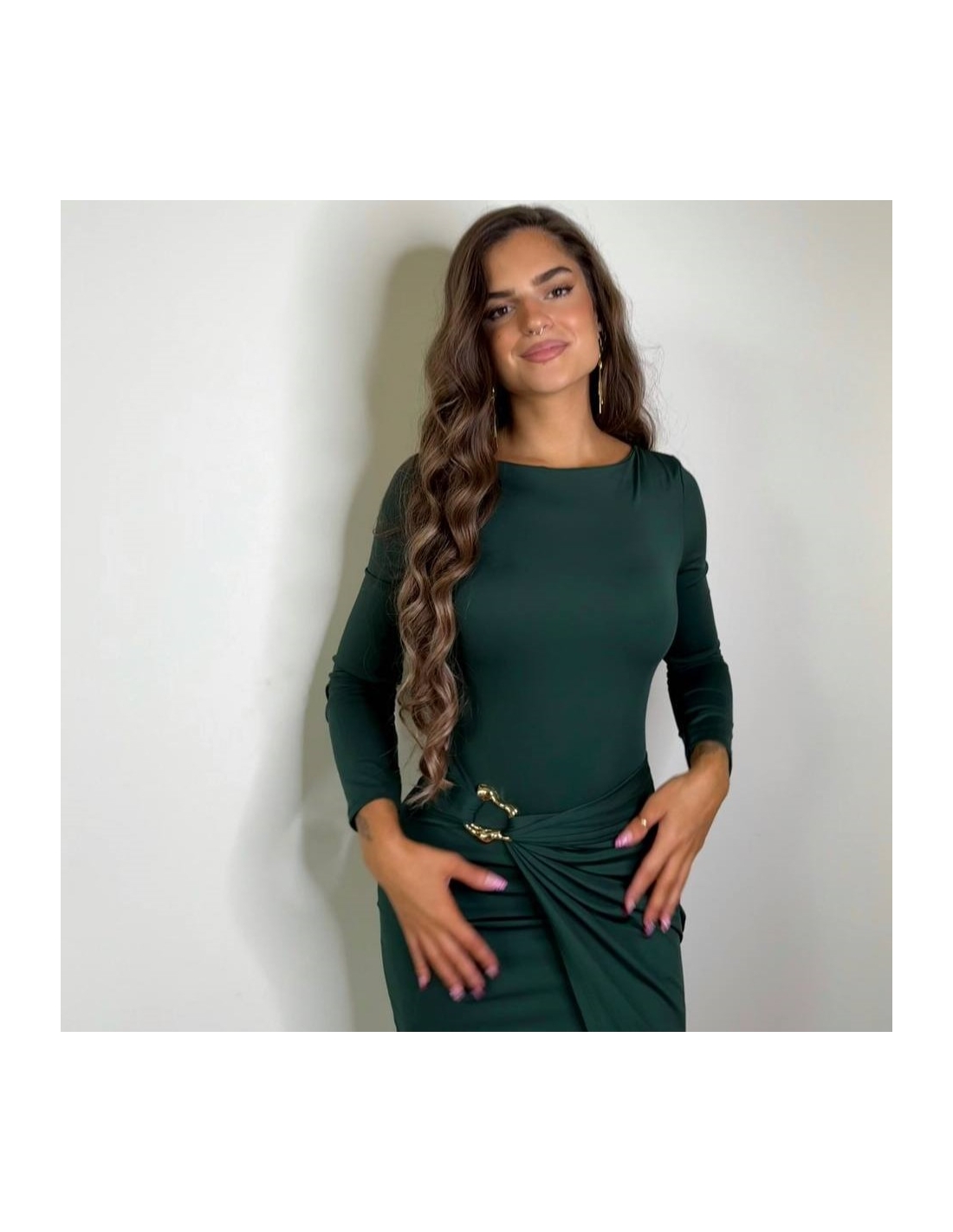 Vestido hebilla de tejido doble licra con fruncido delantero. Talla única.