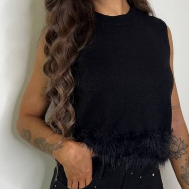 Chaleco punto con plumas en parte inferior. Talla única.