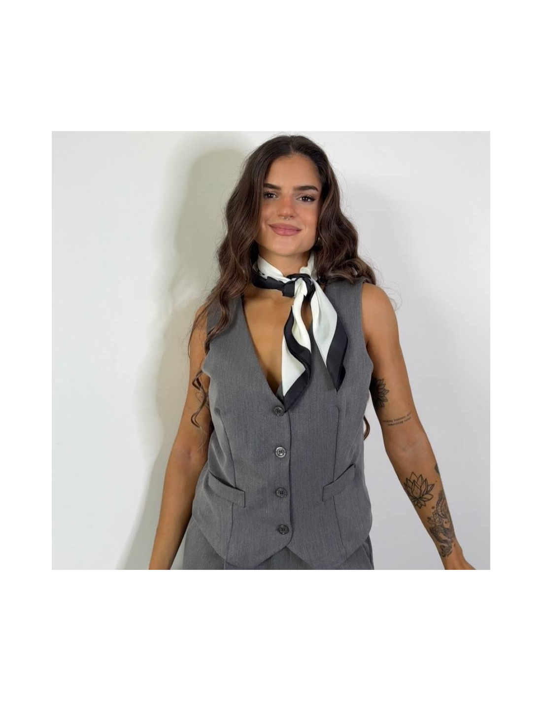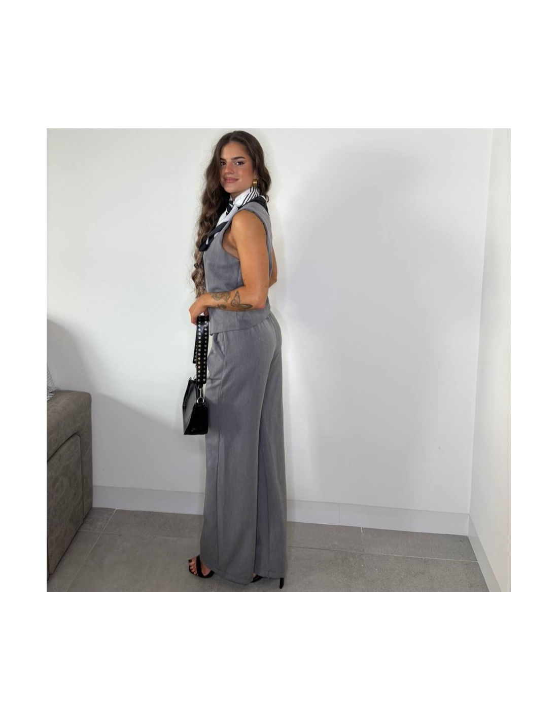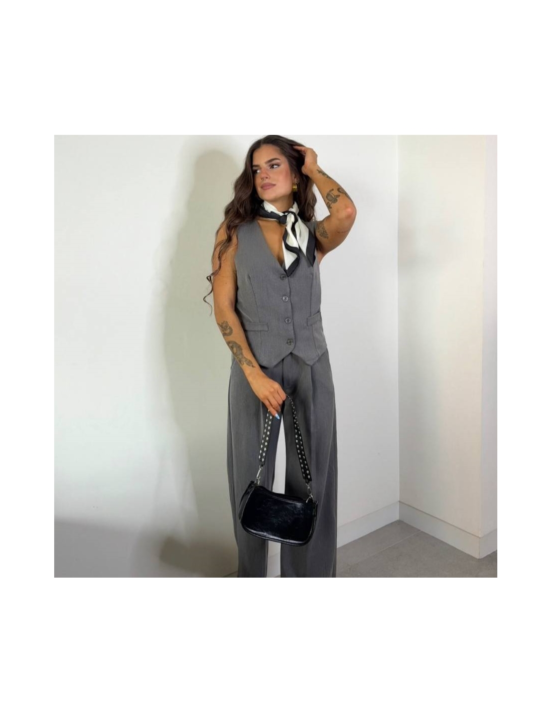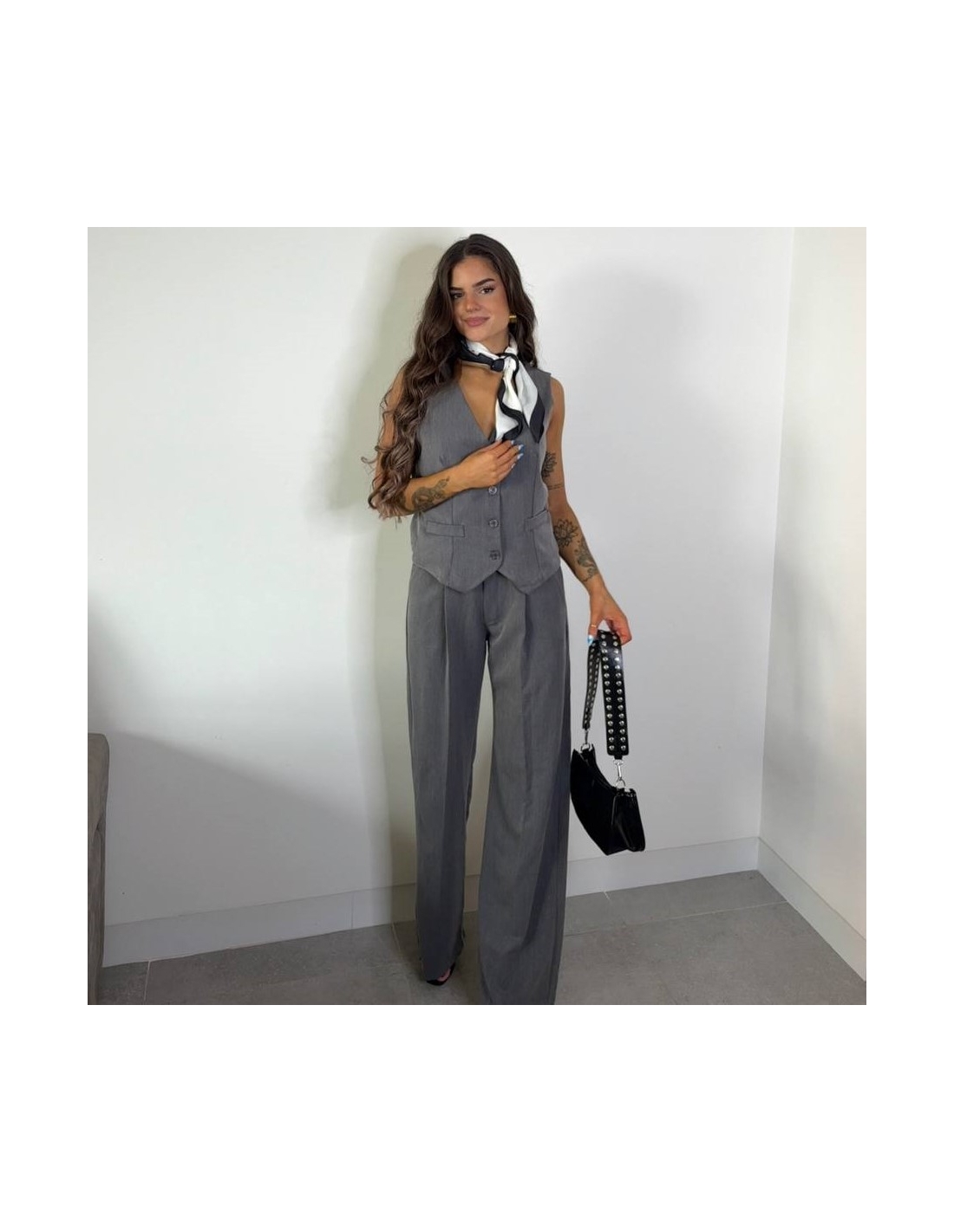 Conjunto chaleco + pantalón traje en tono gris. Talla única.