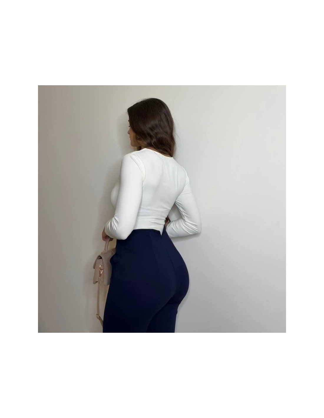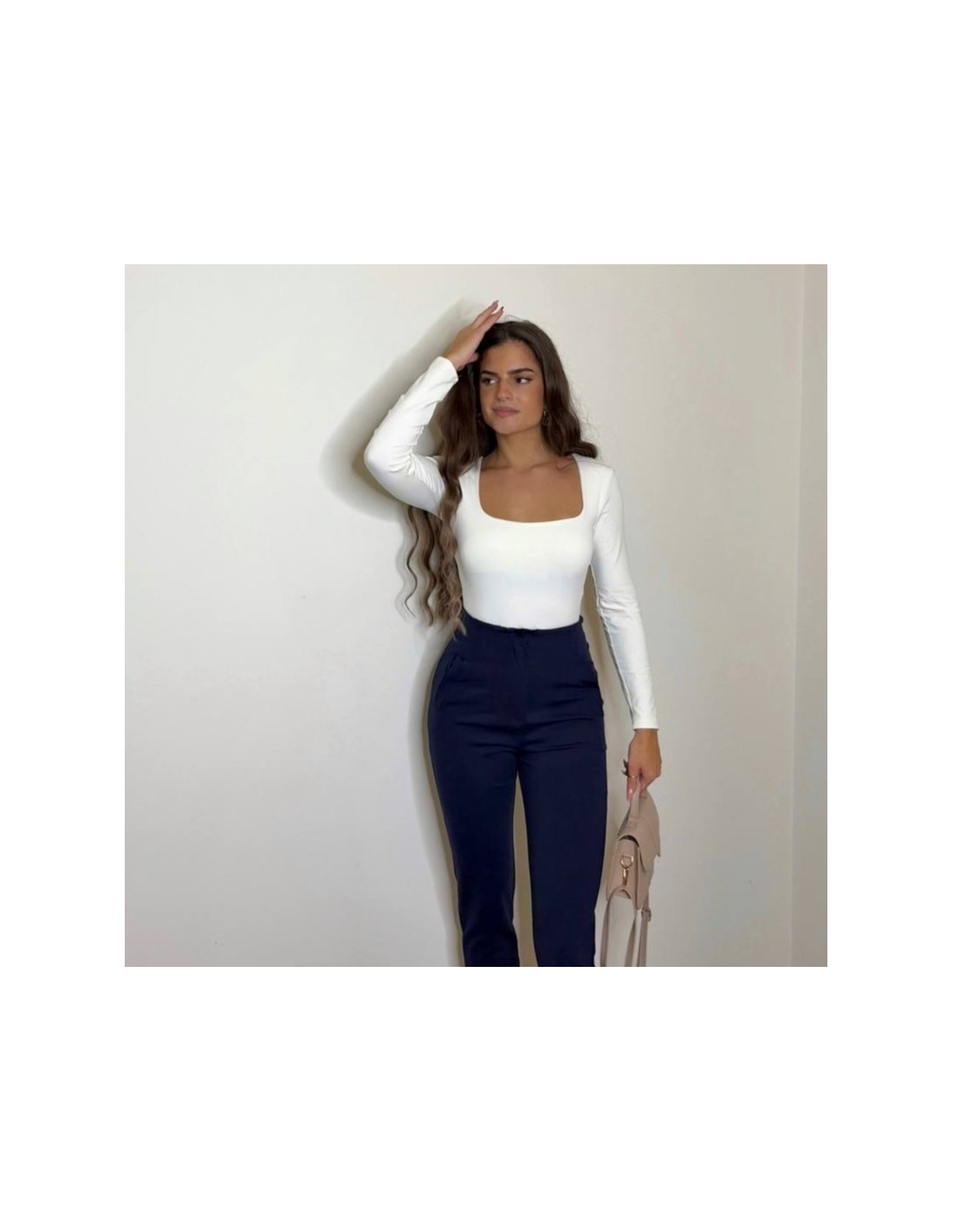 Body basic en tono blanco. Escote redondo. De manga larga. Doble tejido. Cierre en bajo. Talla única