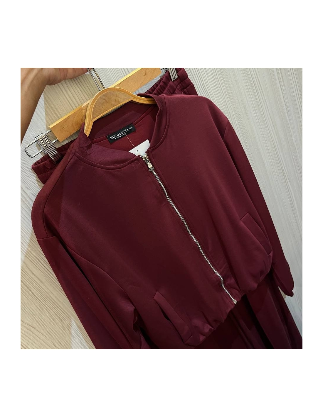 Conjunto deportivo bomber de sudadera más pantalón. Sudadera con cierre delantero con cremallera. Pantalón de tiro alto regulable con cintura elástica. Talla única