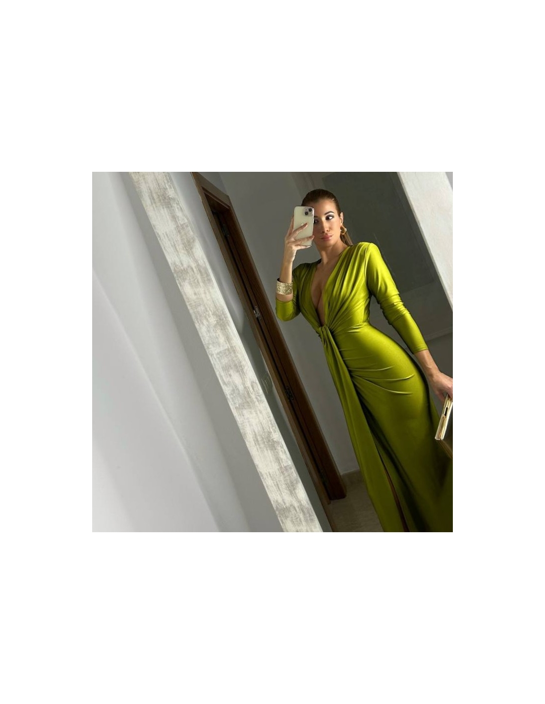 VESTIDO NUDO MANGA VERDE AGUACATE