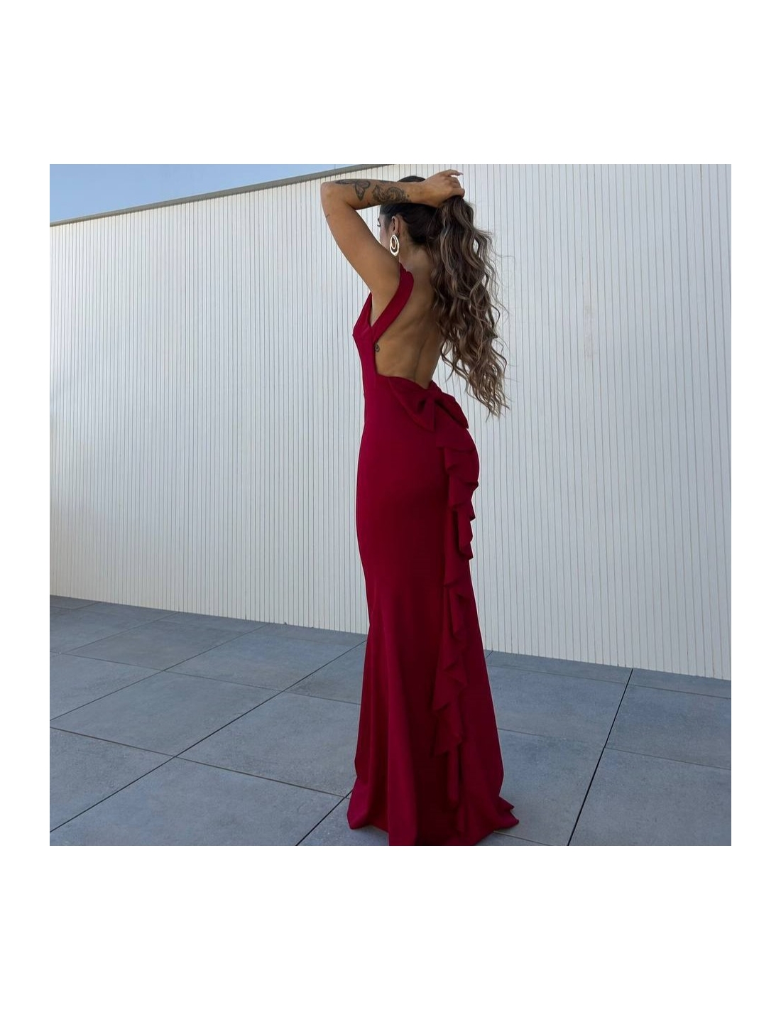 Vestido largo sirena lazo trasero espalda descubierta. Cascos incorporados. Talla única.