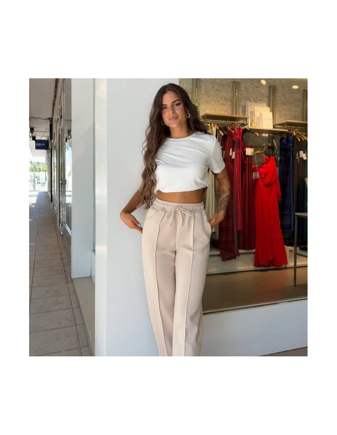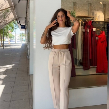 Pantalón deportivo de tiro alto. Cintura elástica. Fluido. Talla única