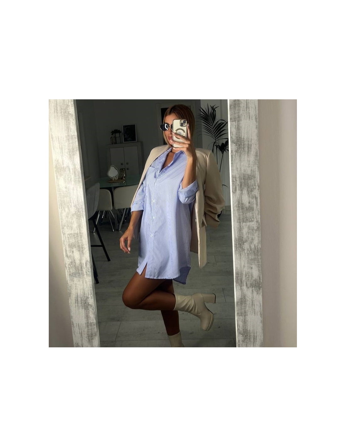 Camisa de rayas larga. Cierre delantero abotonado. Cuello de solapa. De manga larga. Over. Talla única.