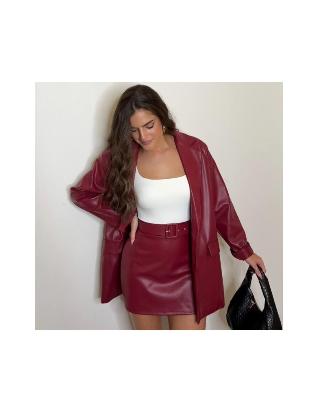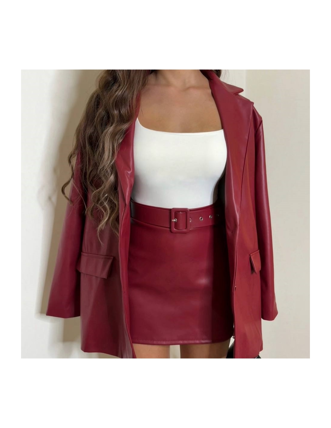Conjunto blazer larga efecto piel con forro interior y hombreras + falda pantalón cinturón. Calidad ++++