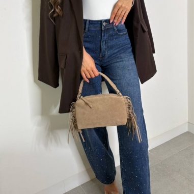 Jeans Balloon con detalle brillitos en parte delantera. Tiro alto.