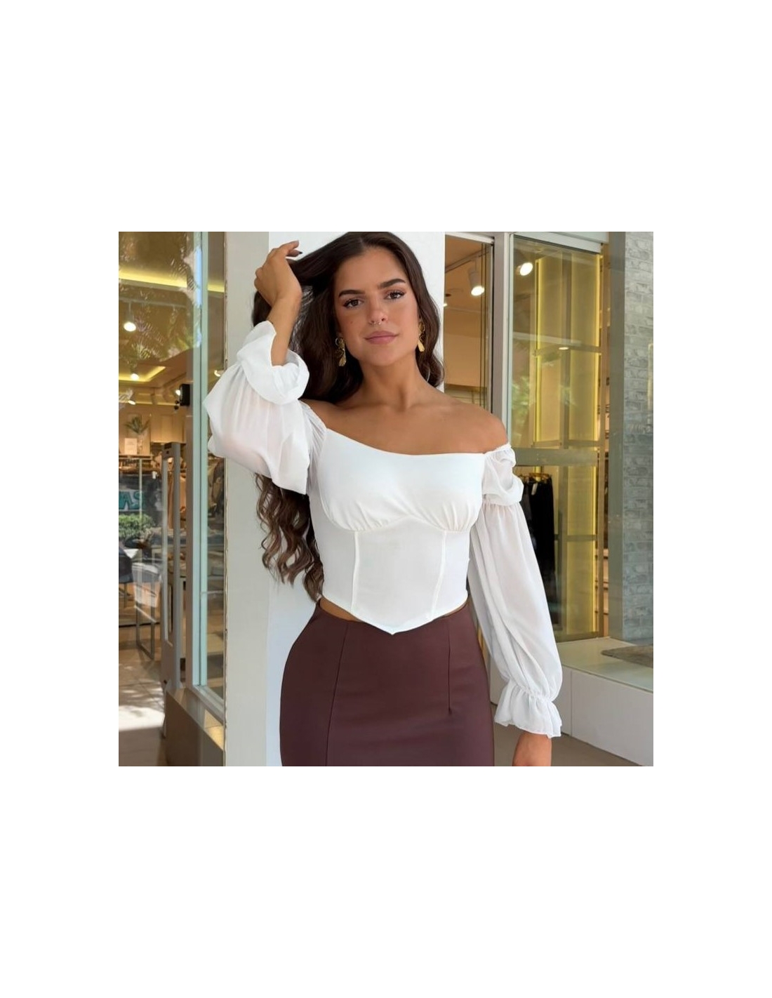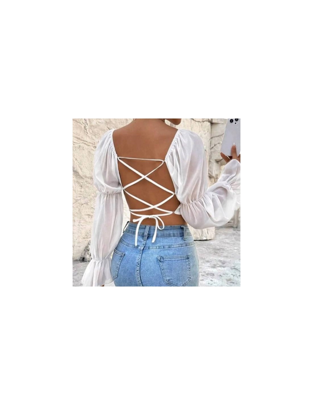 Blusa con mangas de tejido gasa y espalda cruzada regulable. Cascos incorporados. Talla única.