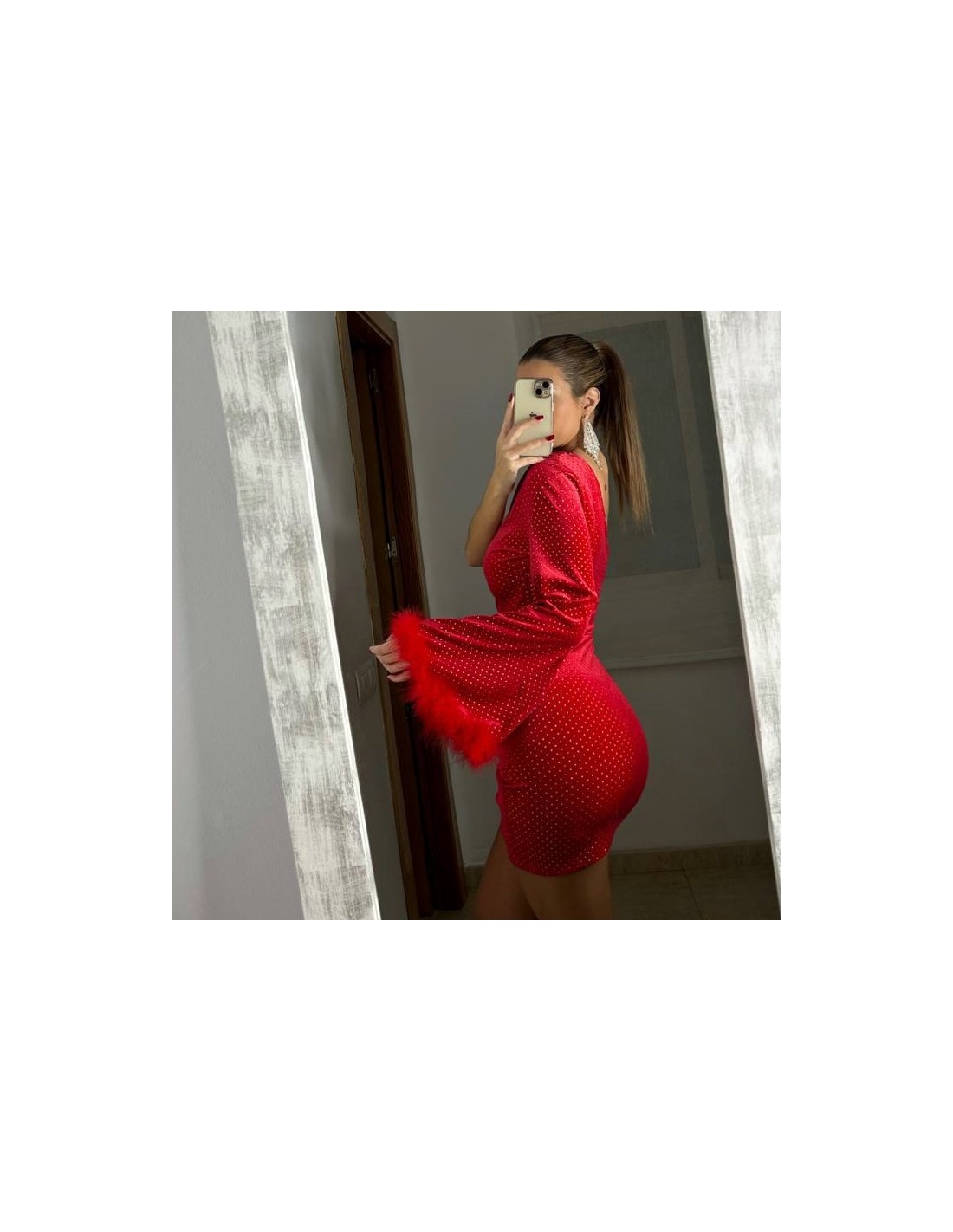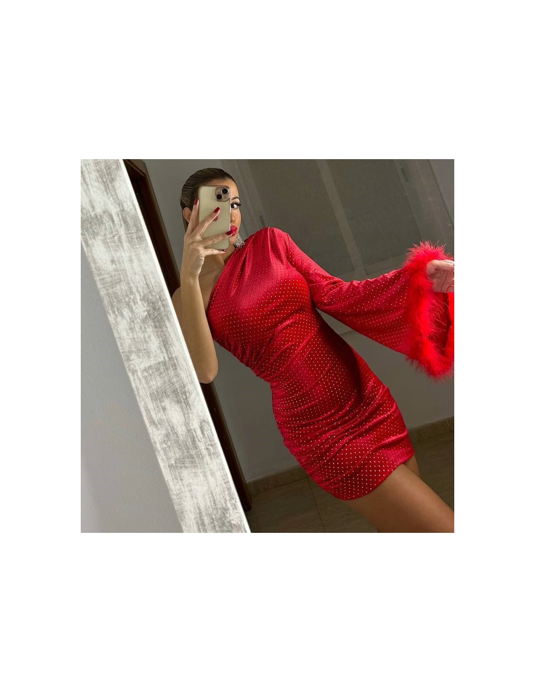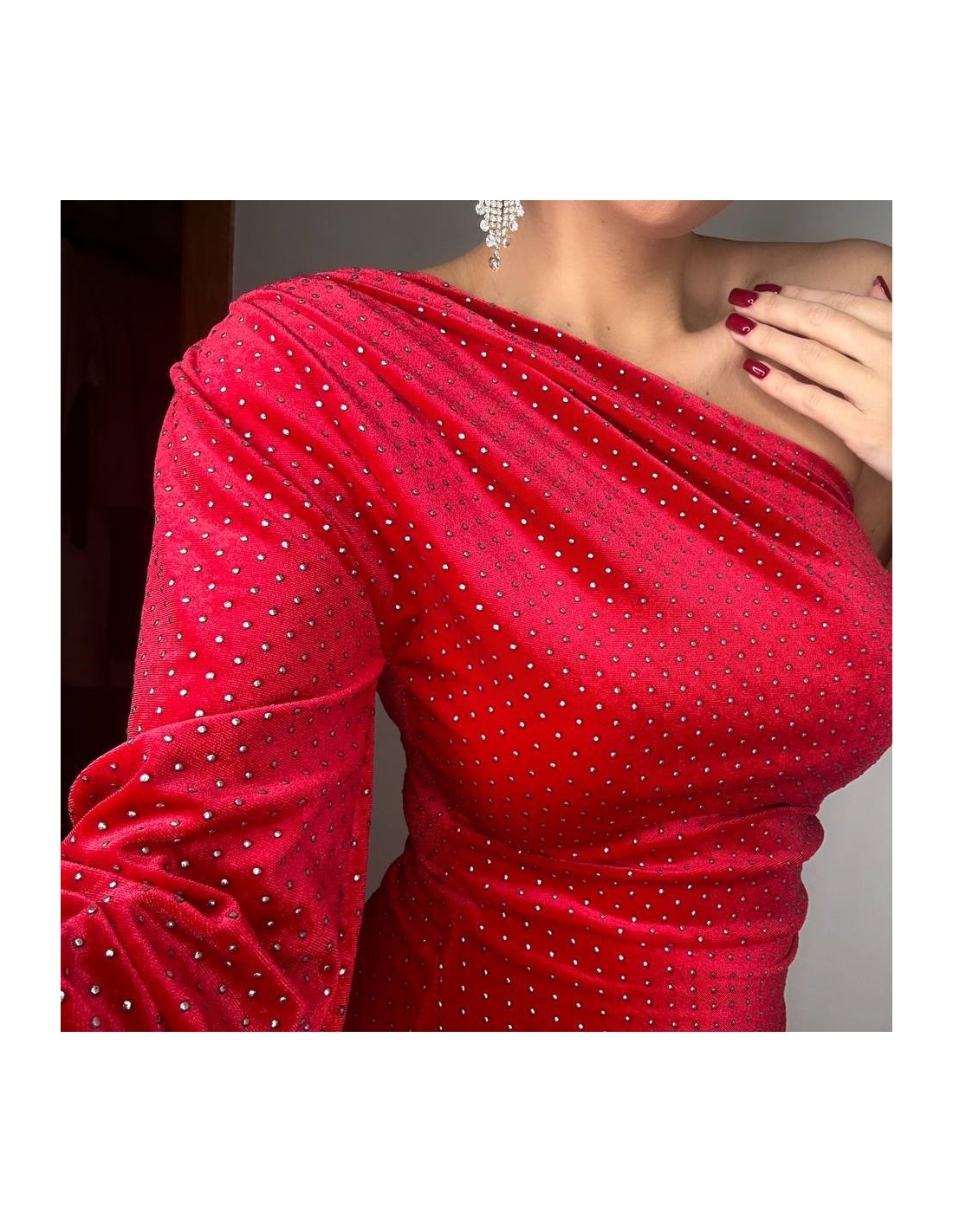 VESTIDO ASIMÉTRCIO TACHAS ROJO