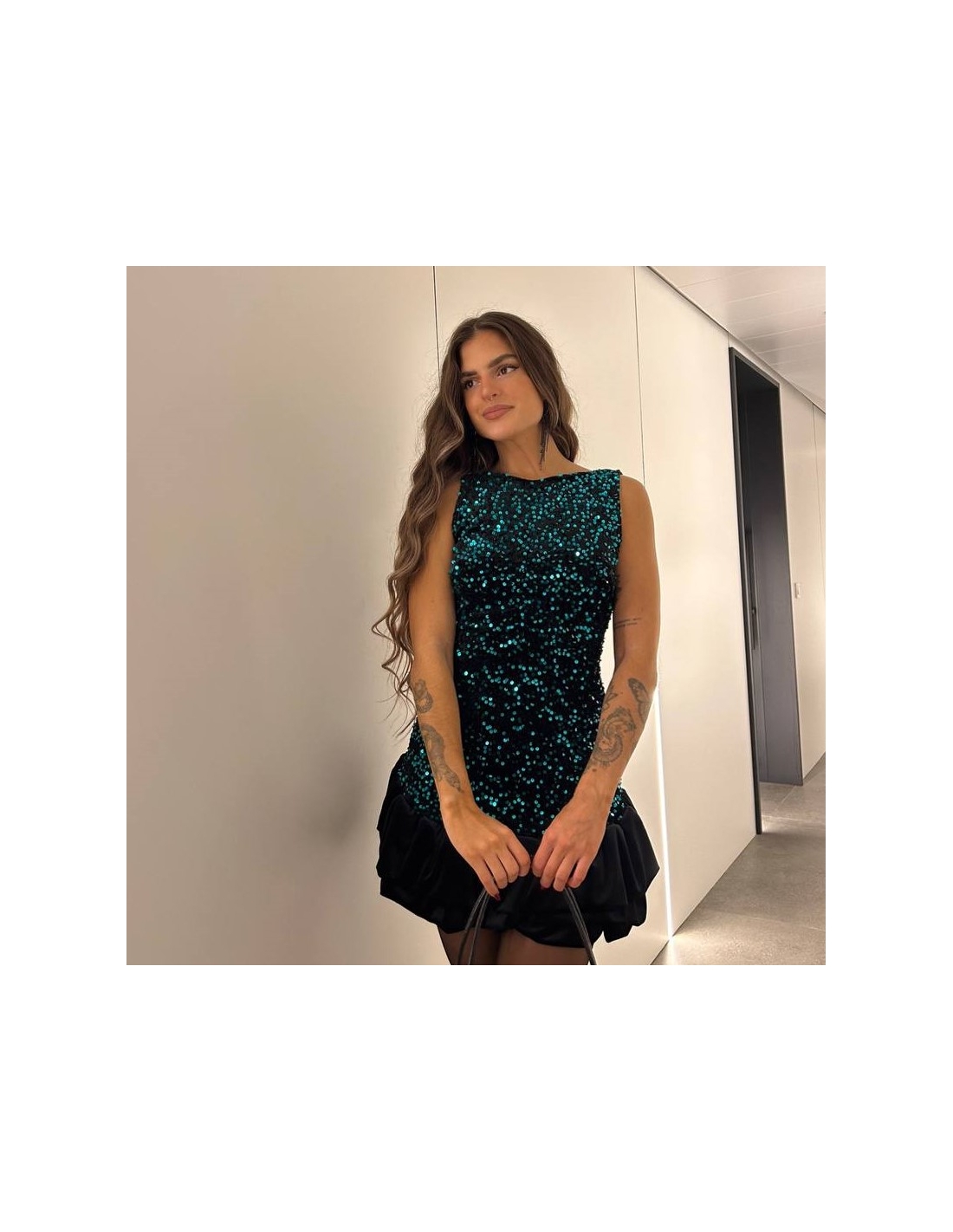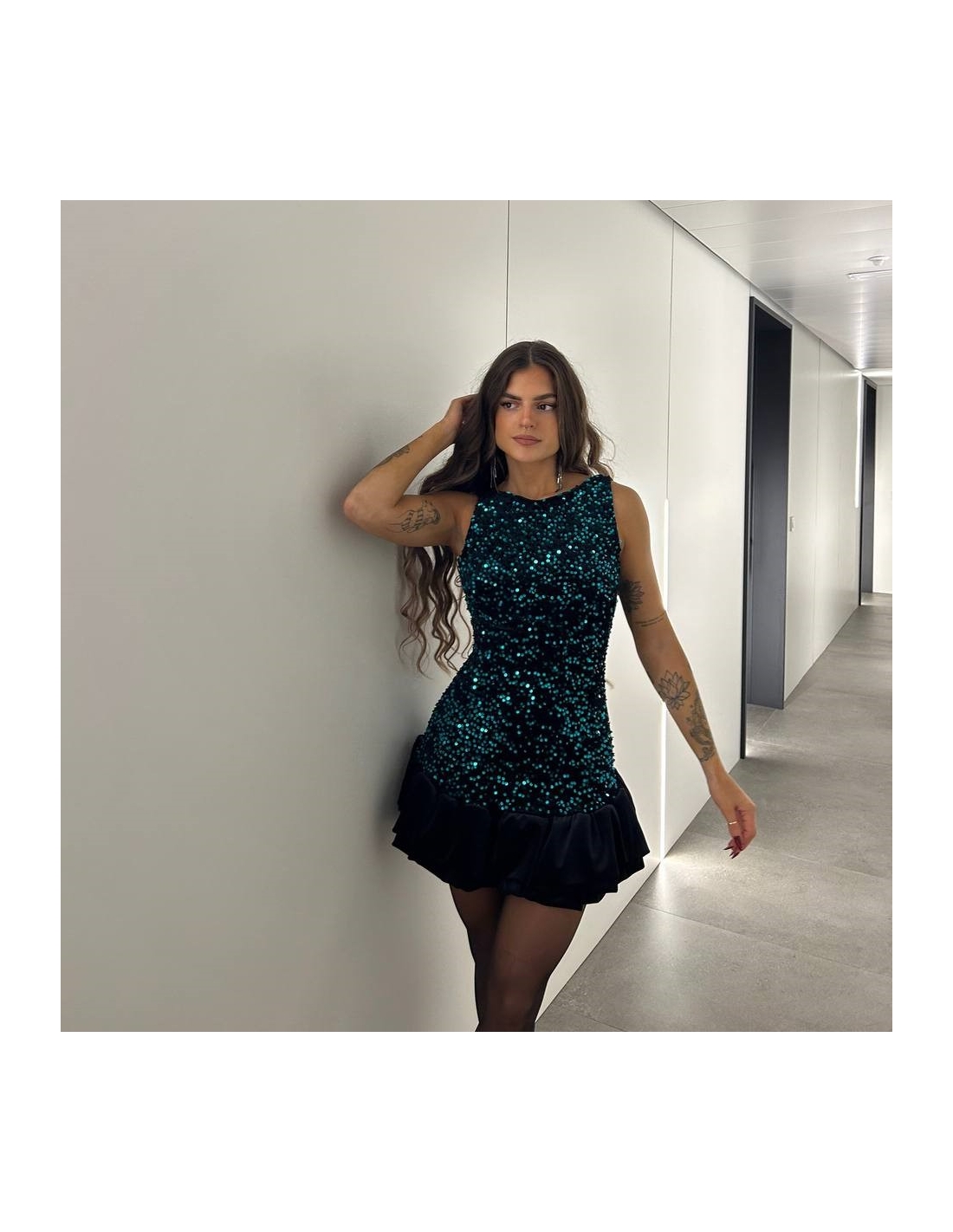 VESTIDO GLOBO LENTEJUELAS VERDE ESMERALDA