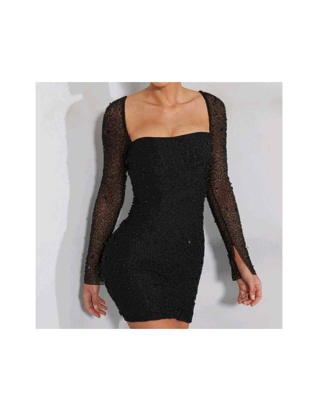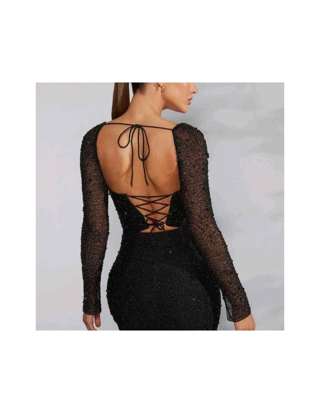 VESTIDO TRANSPARENCIAS LENTEJUELAS NEGRO