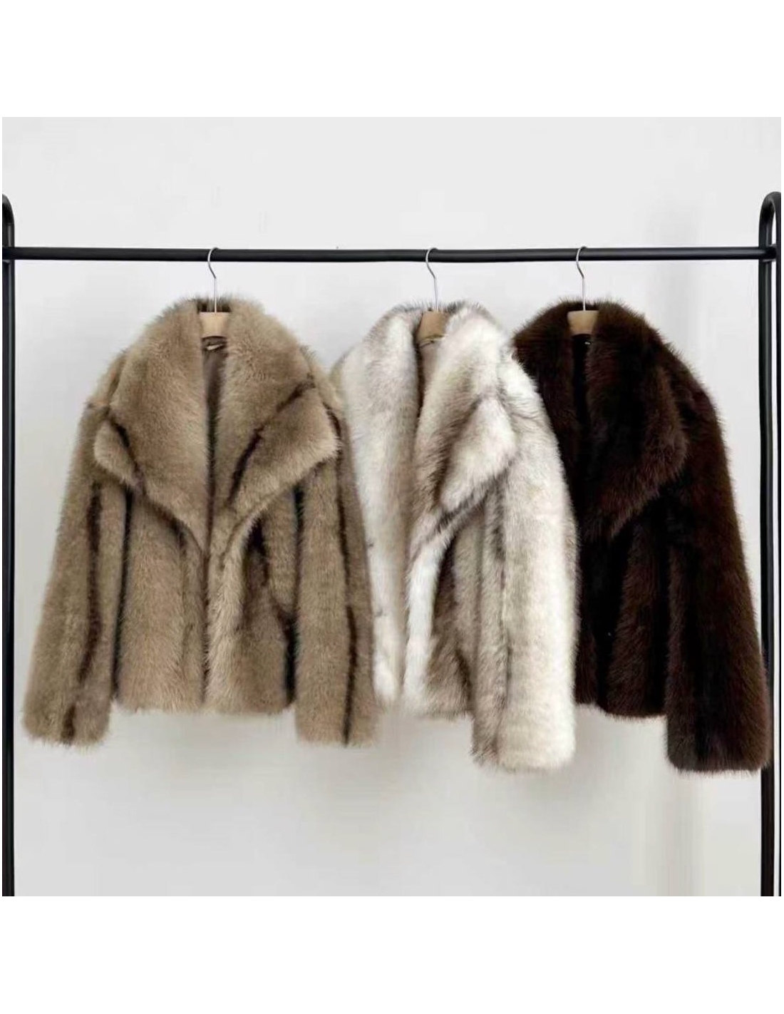 Abrigo de pelito corto. Cuello de solapa. Cierre delantero con botón de clip. Con forro interior a tono.