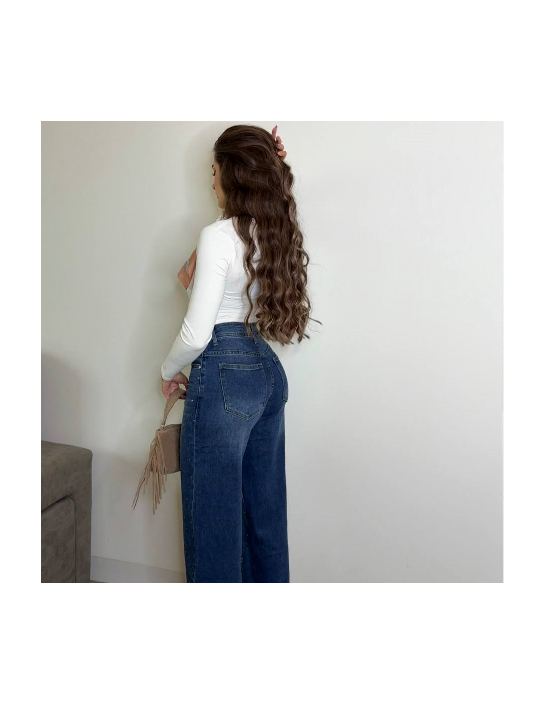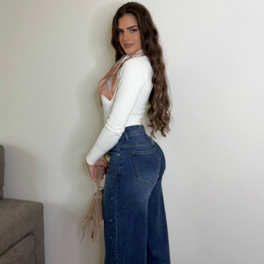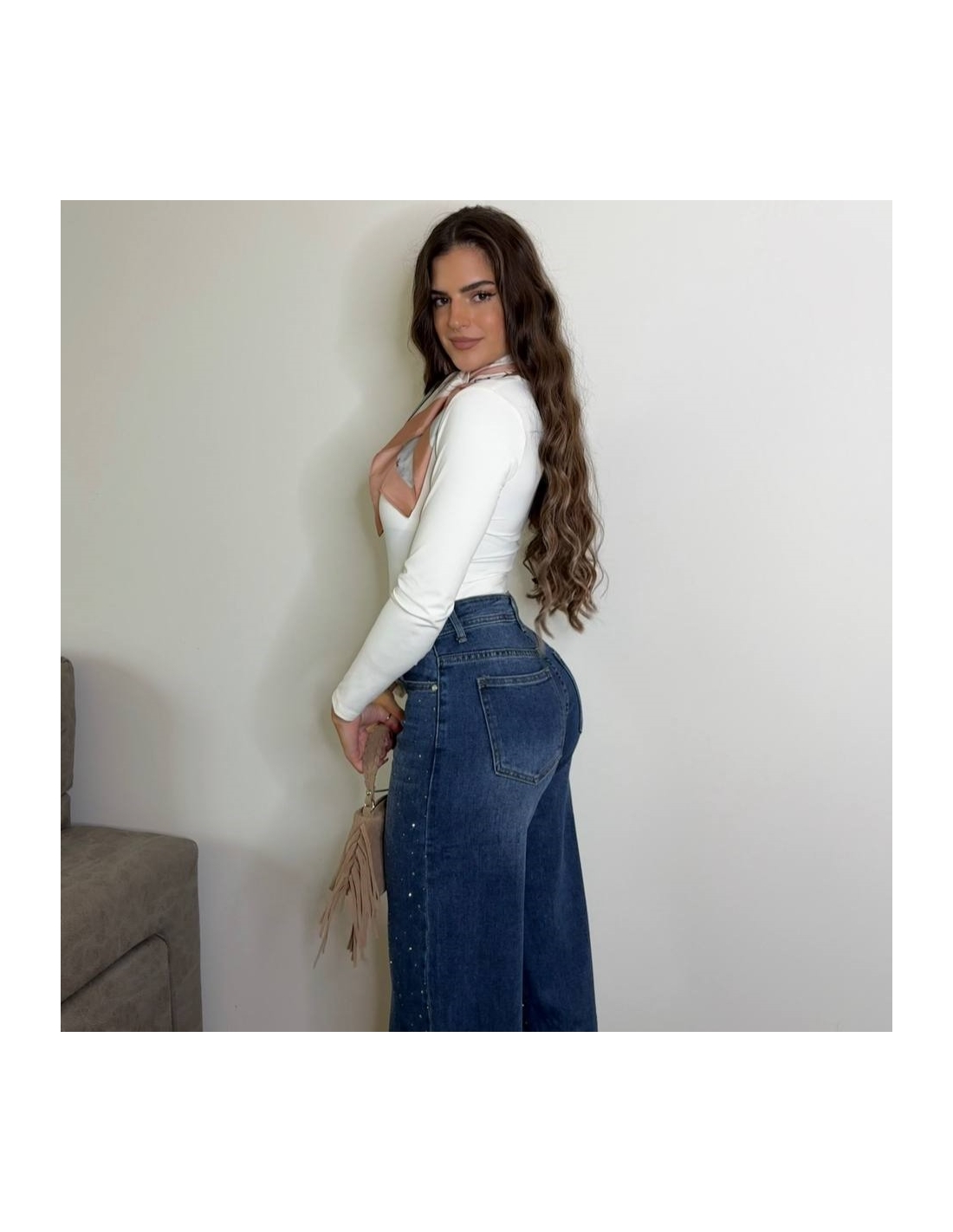 Jeans Balloon con detalle brillitos en parte delantera. Tiro alto.