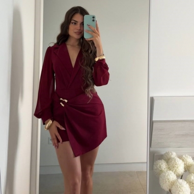 Mono corto con mangas de tul. Escote cruzado. Hebilla dorada lateral. Talla única.