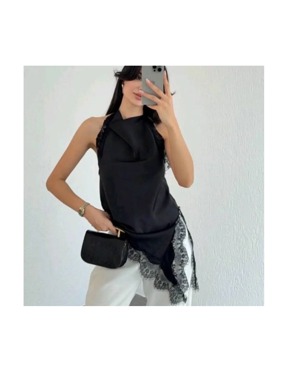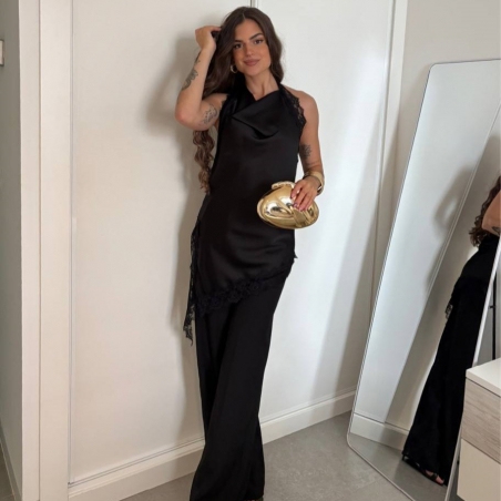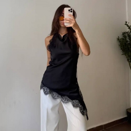 TOP HALTER LENCERO NEGRO