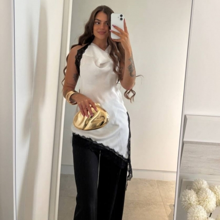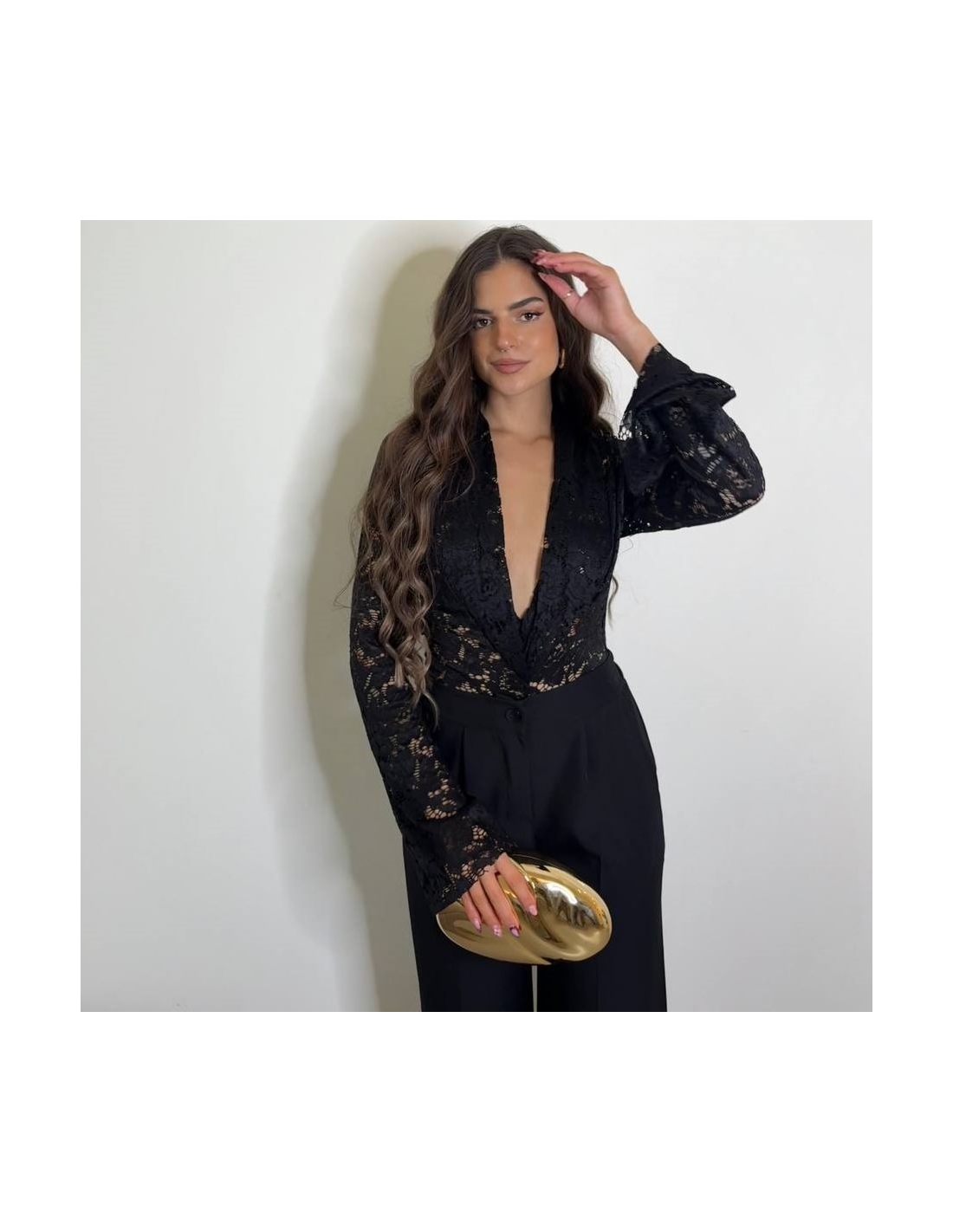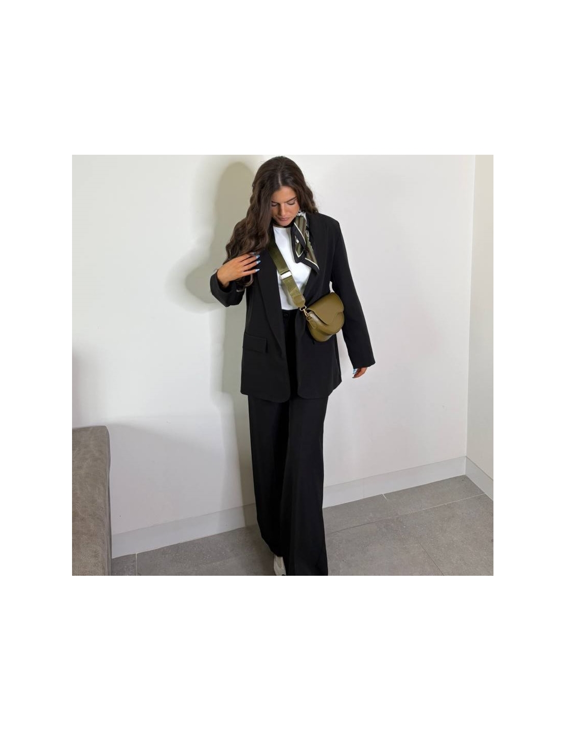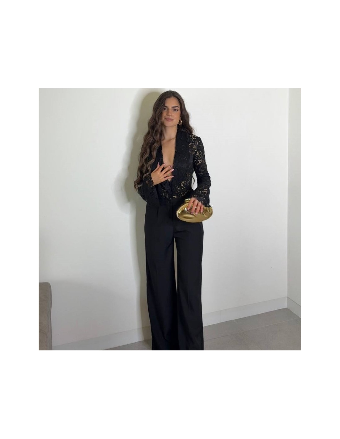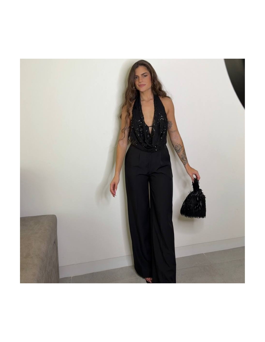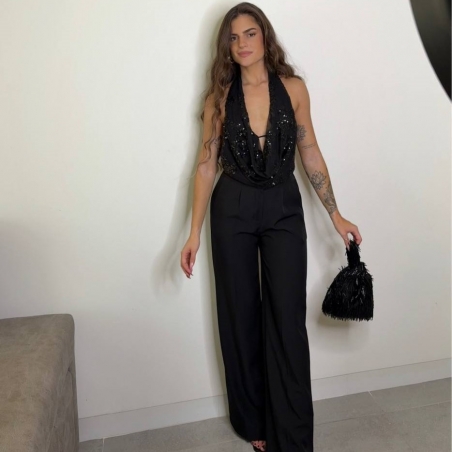 Pantalón traje negro con pinzas. Cintura elástica. Talla única.