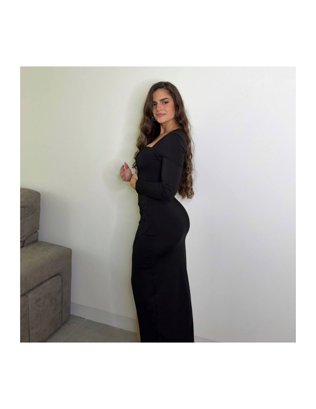 Vestido corset manga larga ajustado. Escote de corazón. Fruncido en parte delantera. Abertura delantera. Tejido doble licra. Talla única