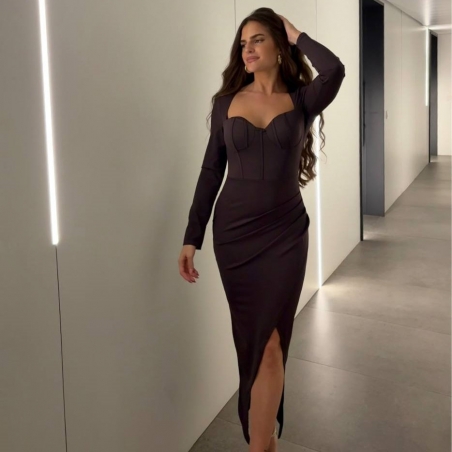Vestido corset manga larga ajustado. Escote de corazón. Fruncido en parte delantera. Abertura delantera. Tejido doble licra. Talla única