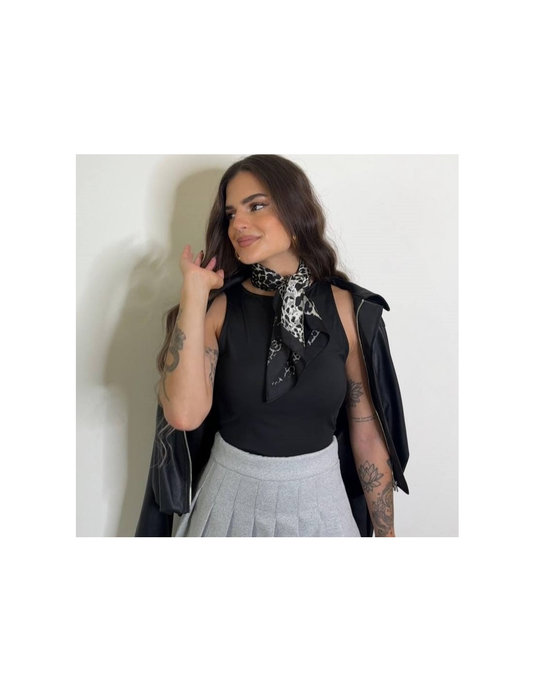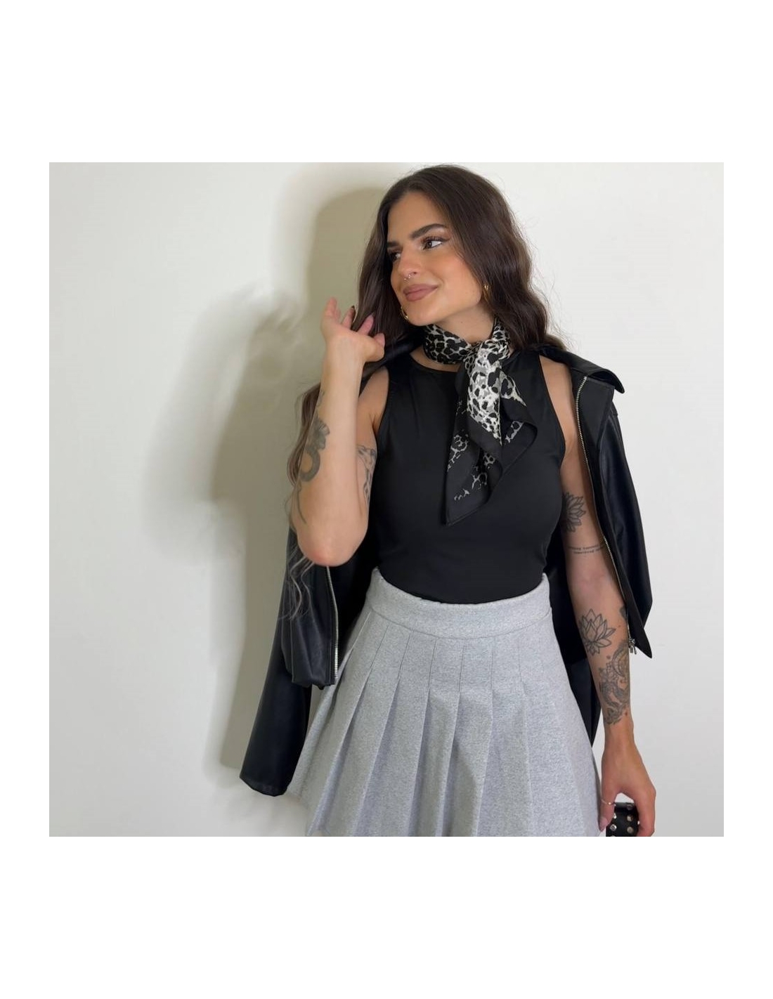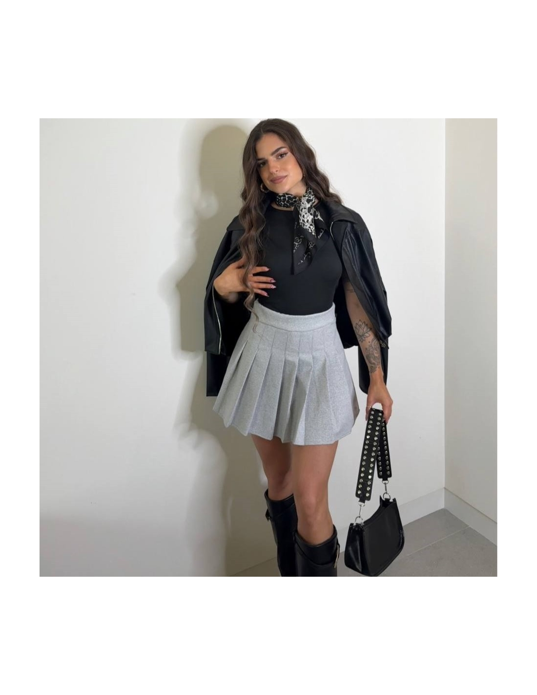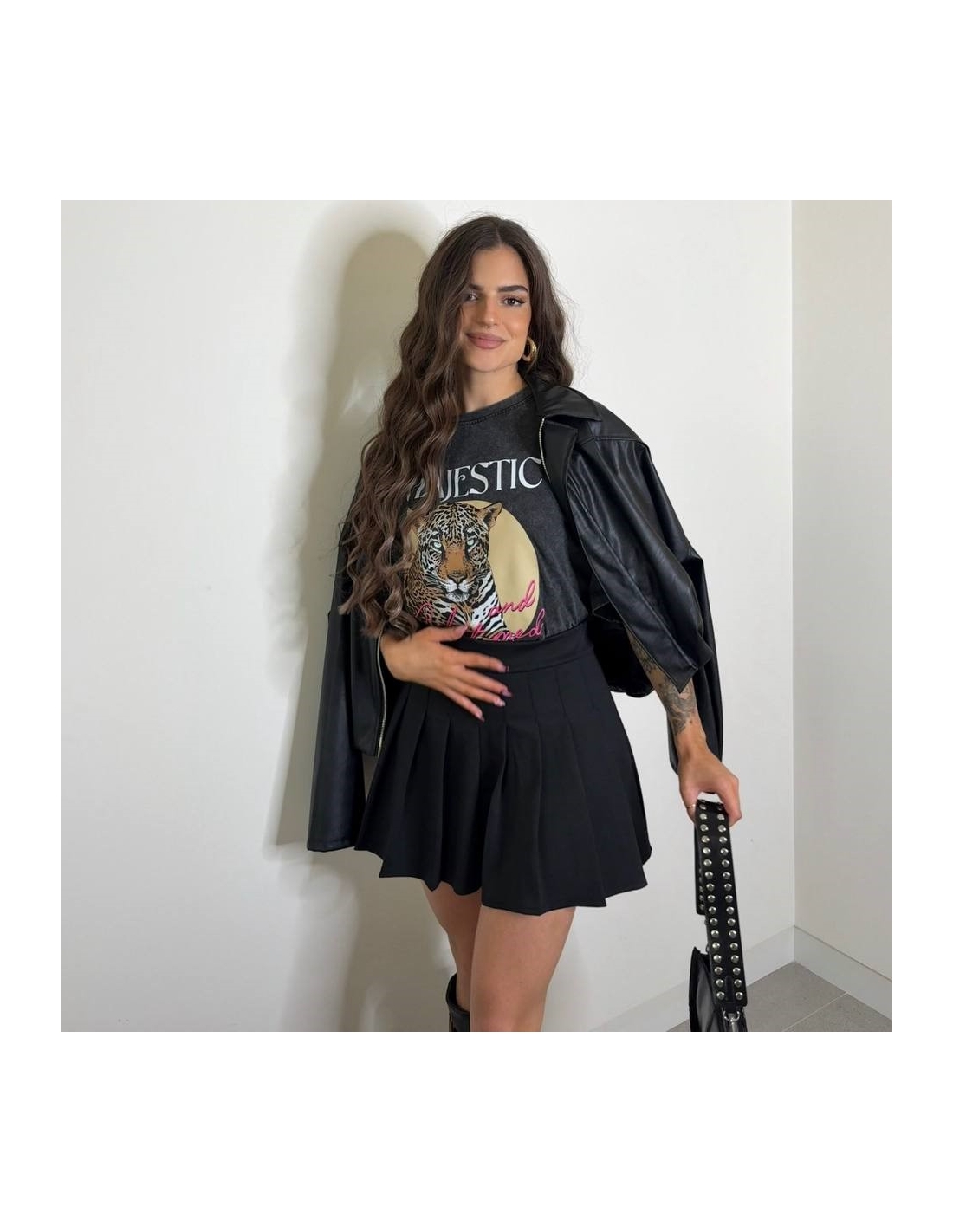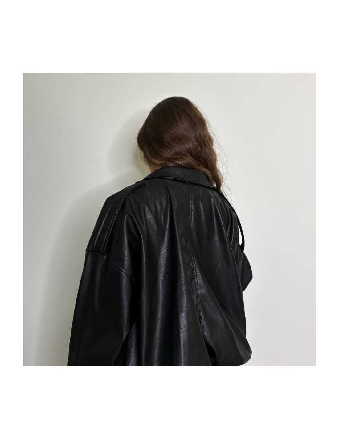 Bomber efecto piel negra. Con forro interior a tono. De manga larga. Cierre delanero con cremallera y botones. Talla única