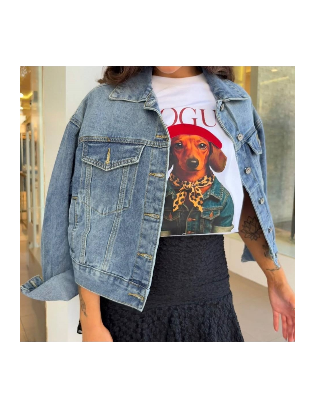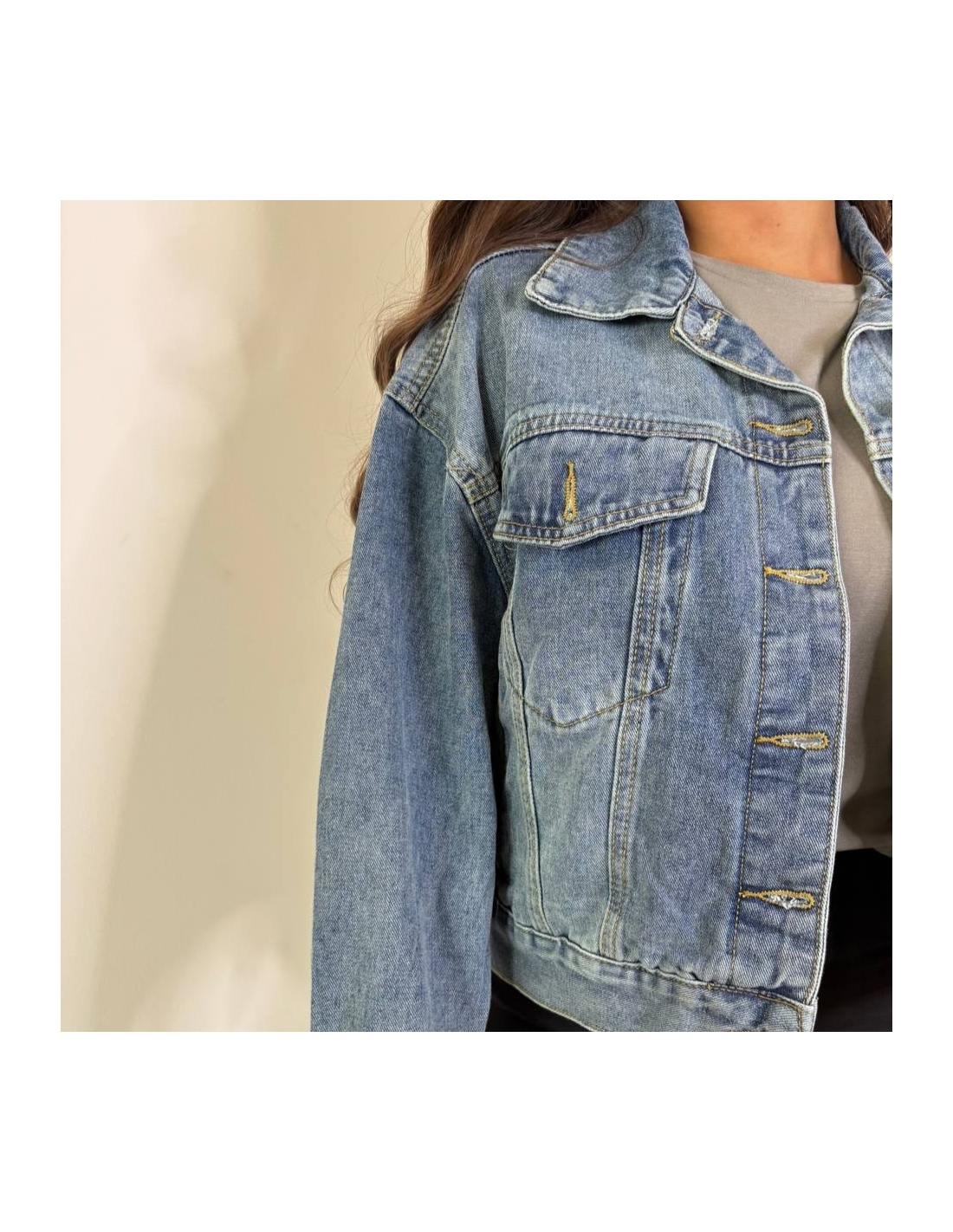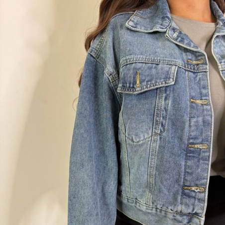 Chaqueta vaquera de manga larga. Cuello de solapa. Cierre delantero abotonado. Talla única