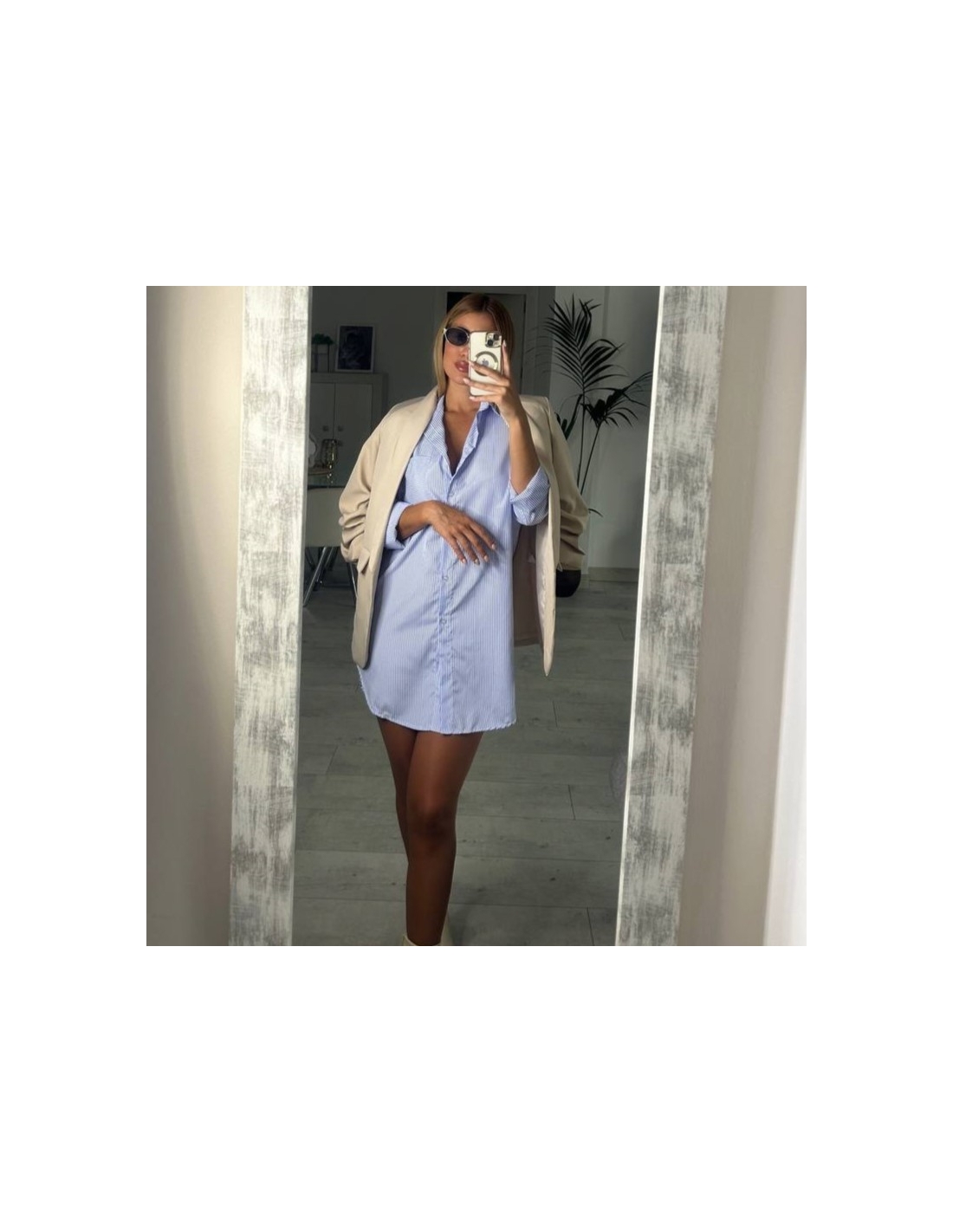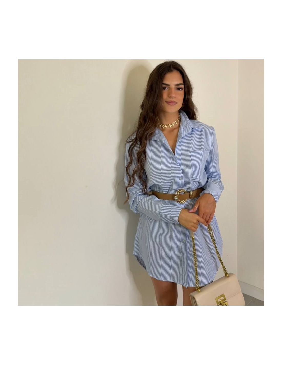 Camisa de rayas larga. Cierre delantero abotonado. Cuello de solapa. De manga larga. Over. Talla única.