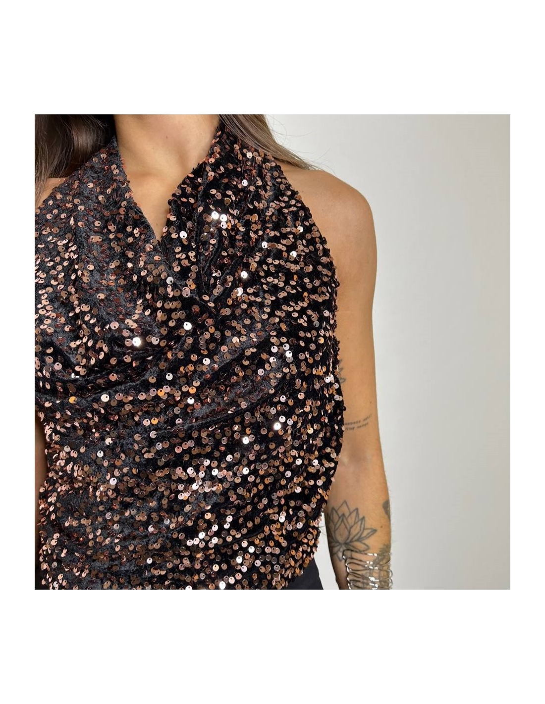 TOP HALTER LENTEJUELAS CHOCO