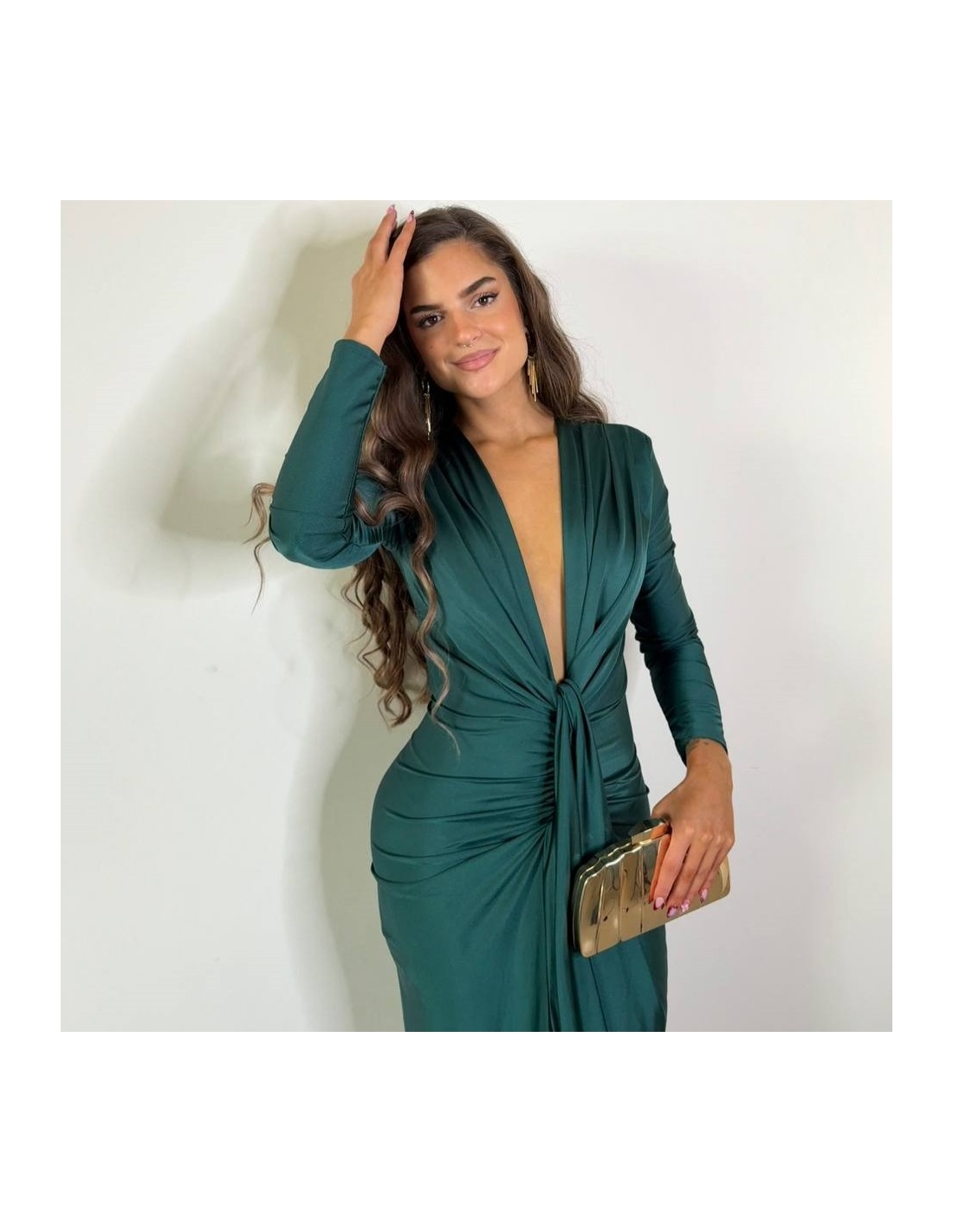 VESTIDO NUDO MANGA VERDE ESMERALDA