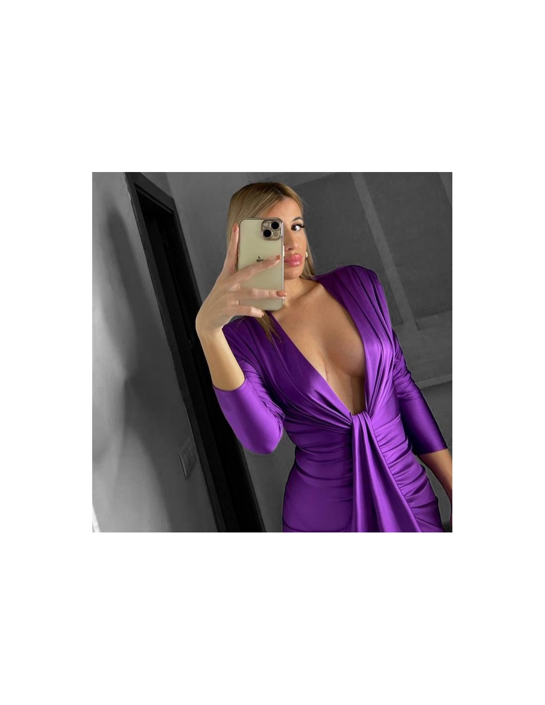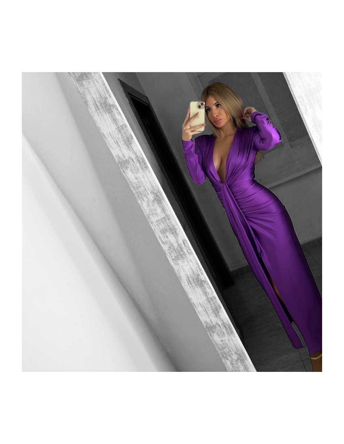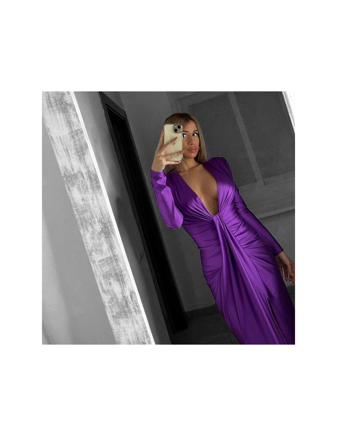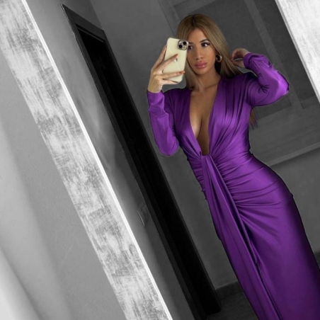 Vestido evento nudo con manga larga. Nudo en parte delantera y abertura. Midi. Fruncido. Talla única