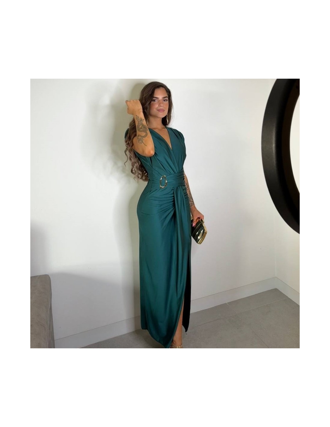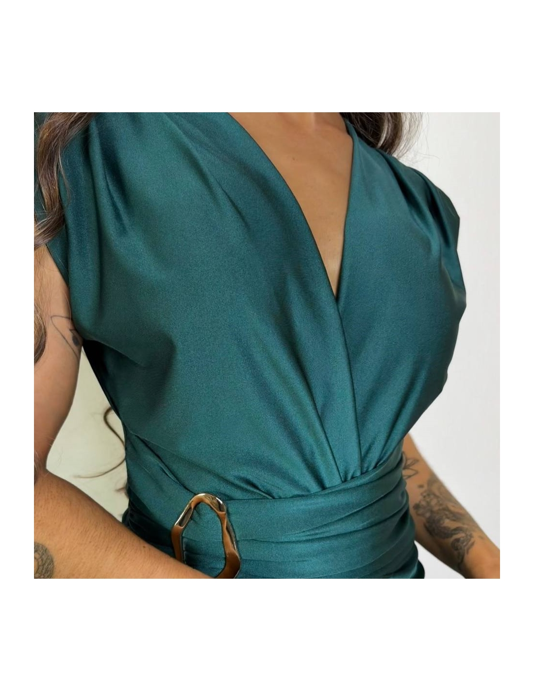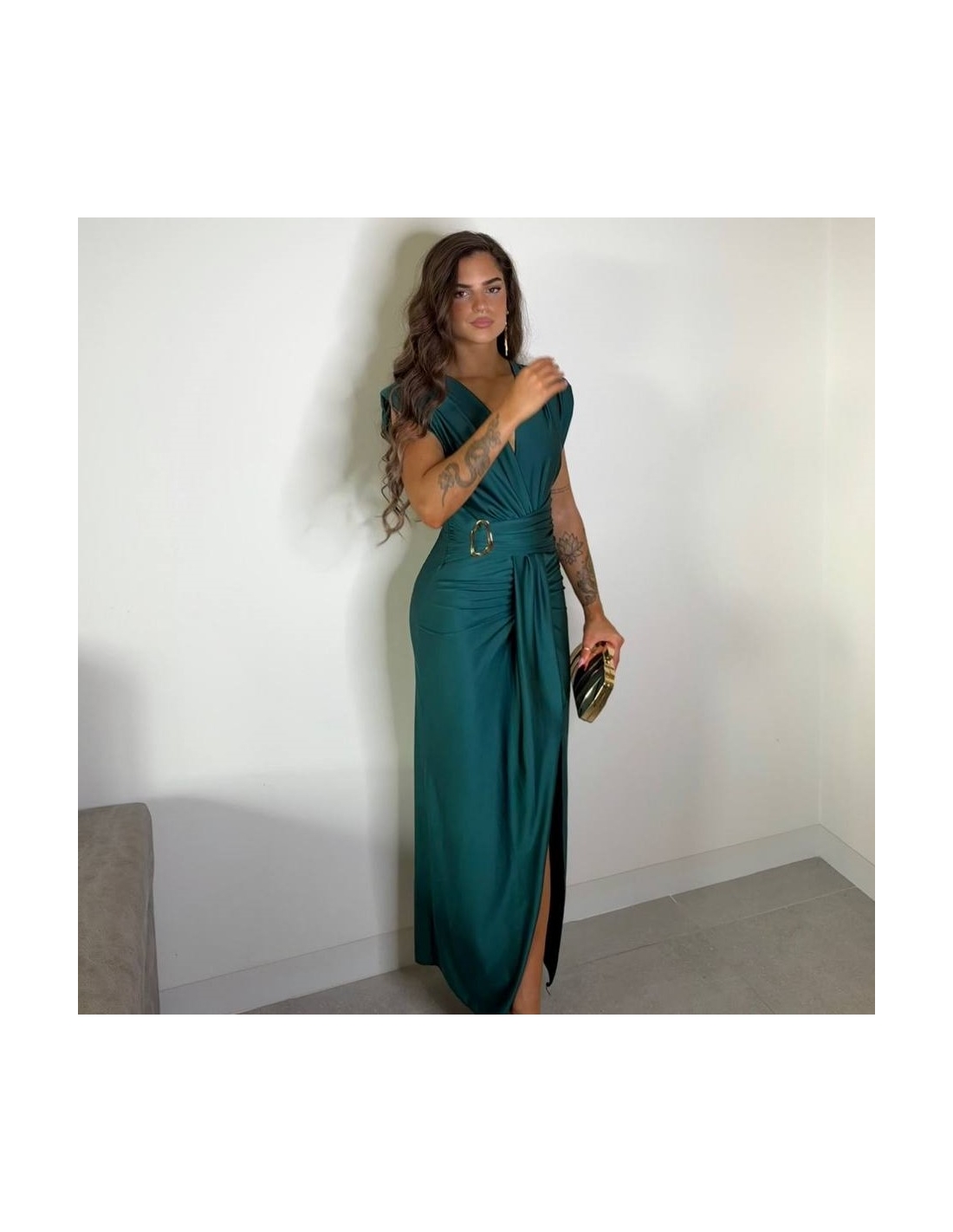 Vestido nudo hebilla dorada. Con hombreras. Tejido acabado satinado. Fruncido delantero. Talla única.