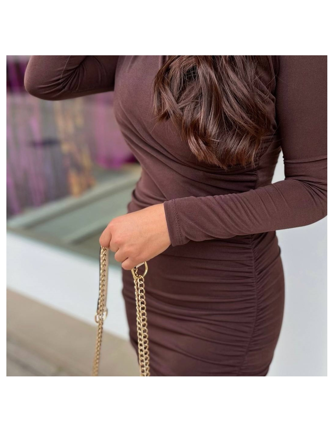Vestido con abertura delantera central. Fruncido. De manga larga. Doble tejido. Talla única