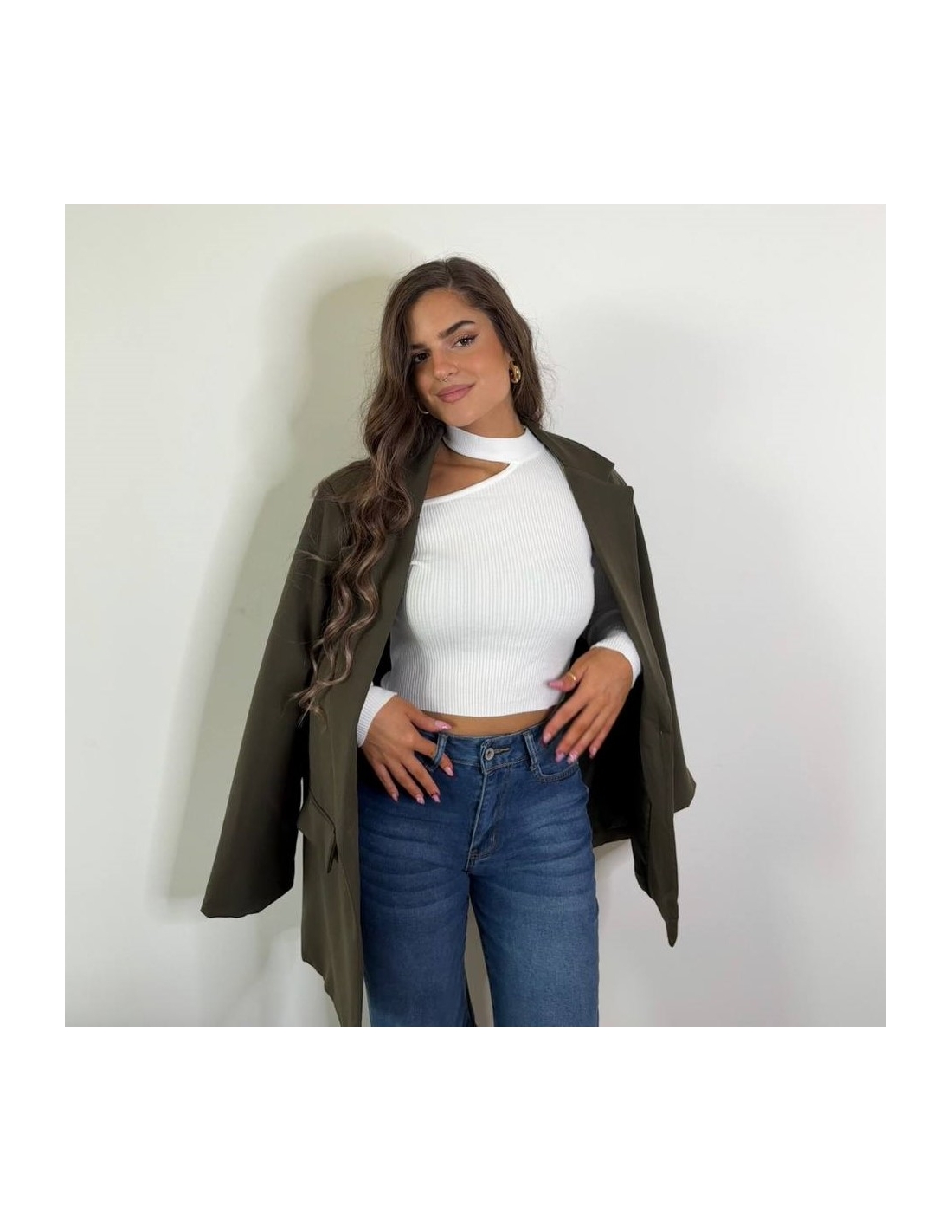 Jeans recto de tiro alto. Con bolsillos delanteros y traseros. Elástico.