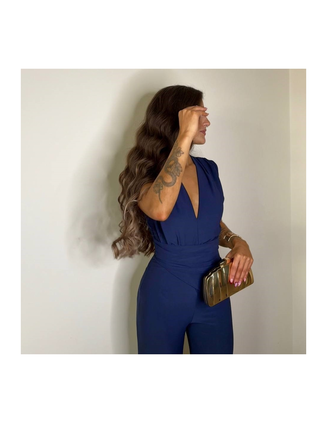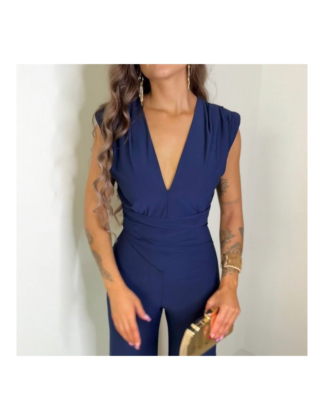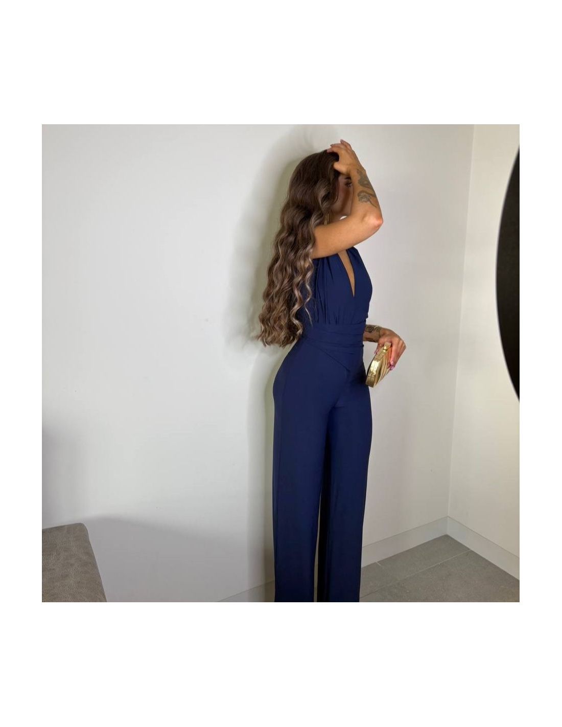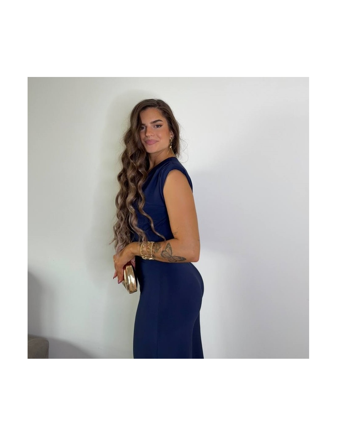 Mono marino largo, de campana. Escote en V. Con hombreras. Talla única