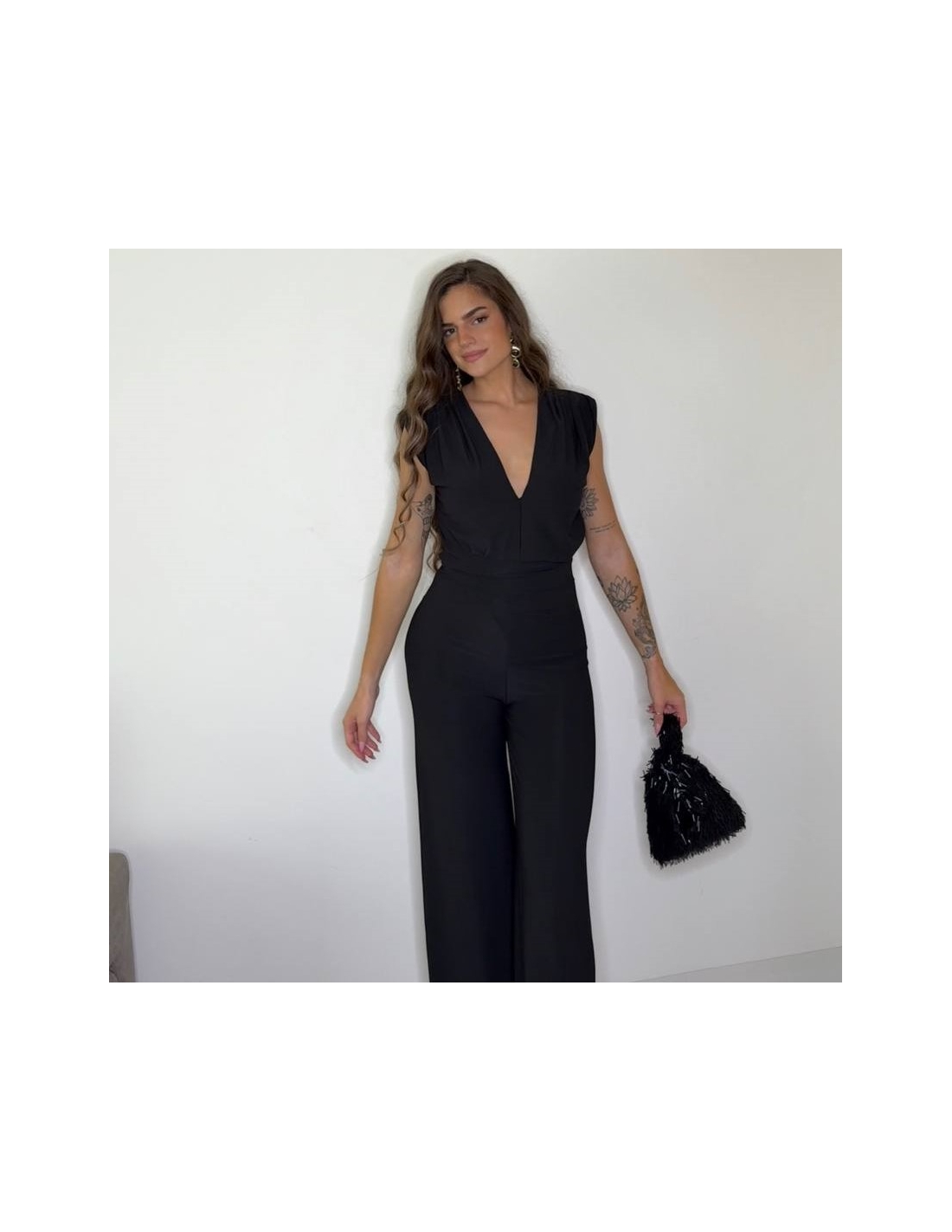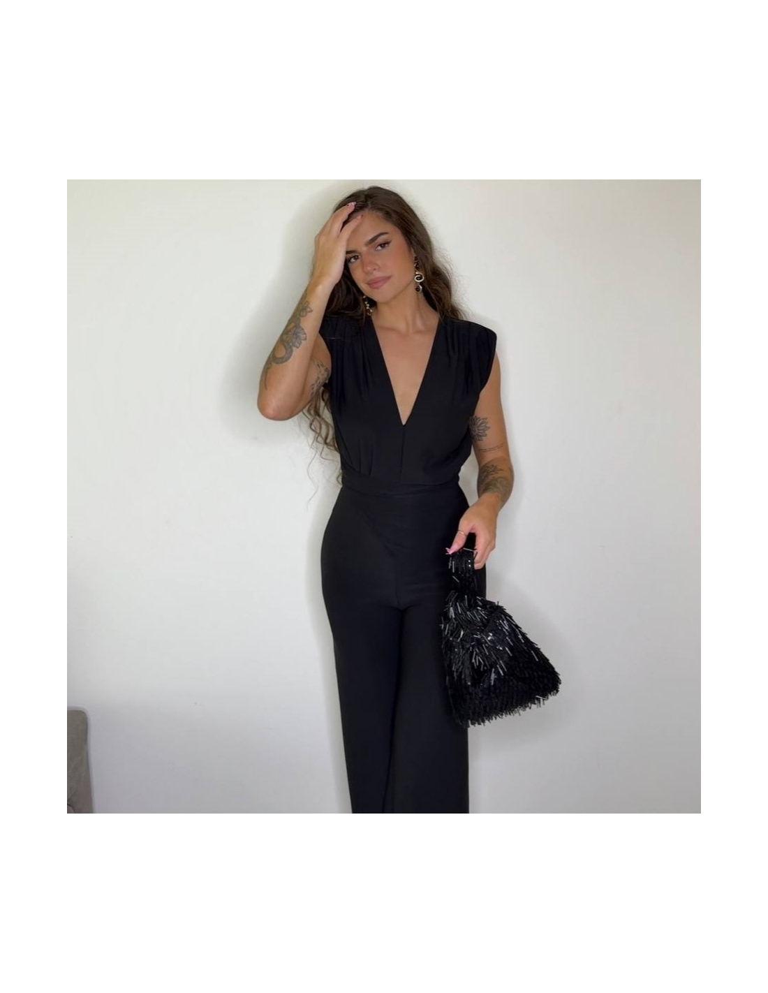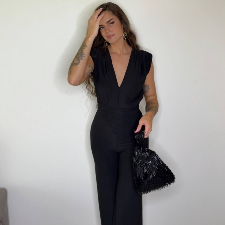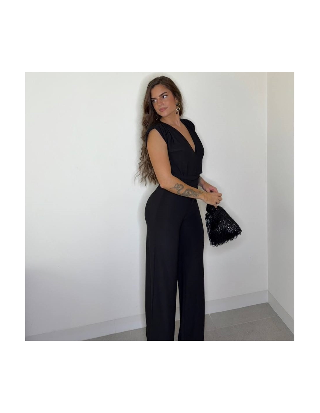 Mono negro largo, de campana. Escote en V. Con hombreras. Talla única