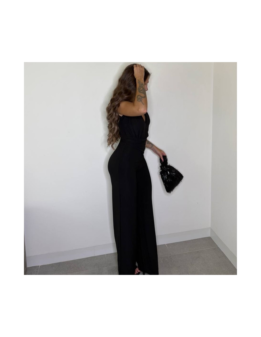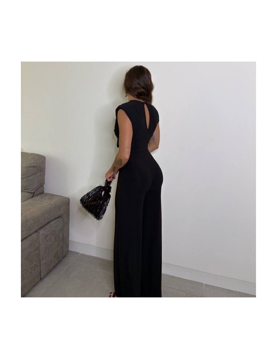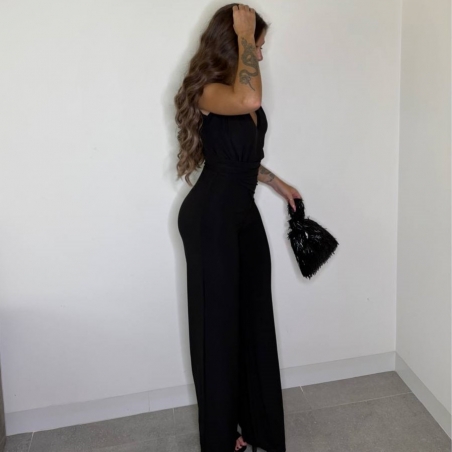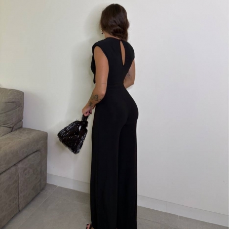 Mono negro largo, de campana. Escote en V. Con hombreras. Talla única