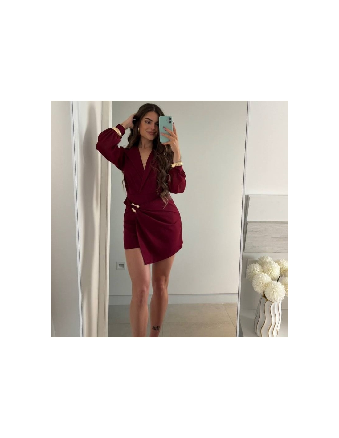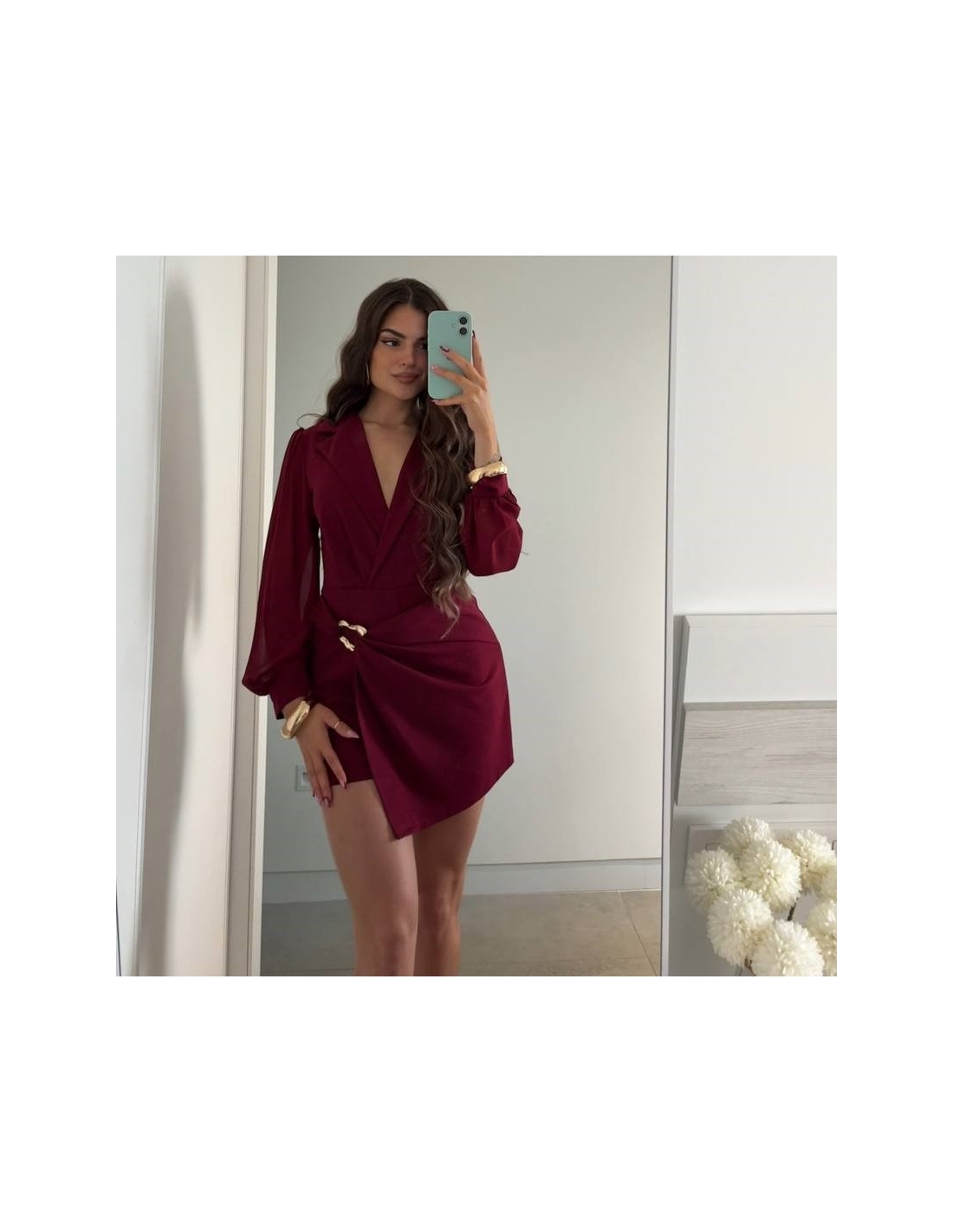 Mono corto con mangas de tul. Escote cruzado. Hebilla dorada lateral. Talla única.