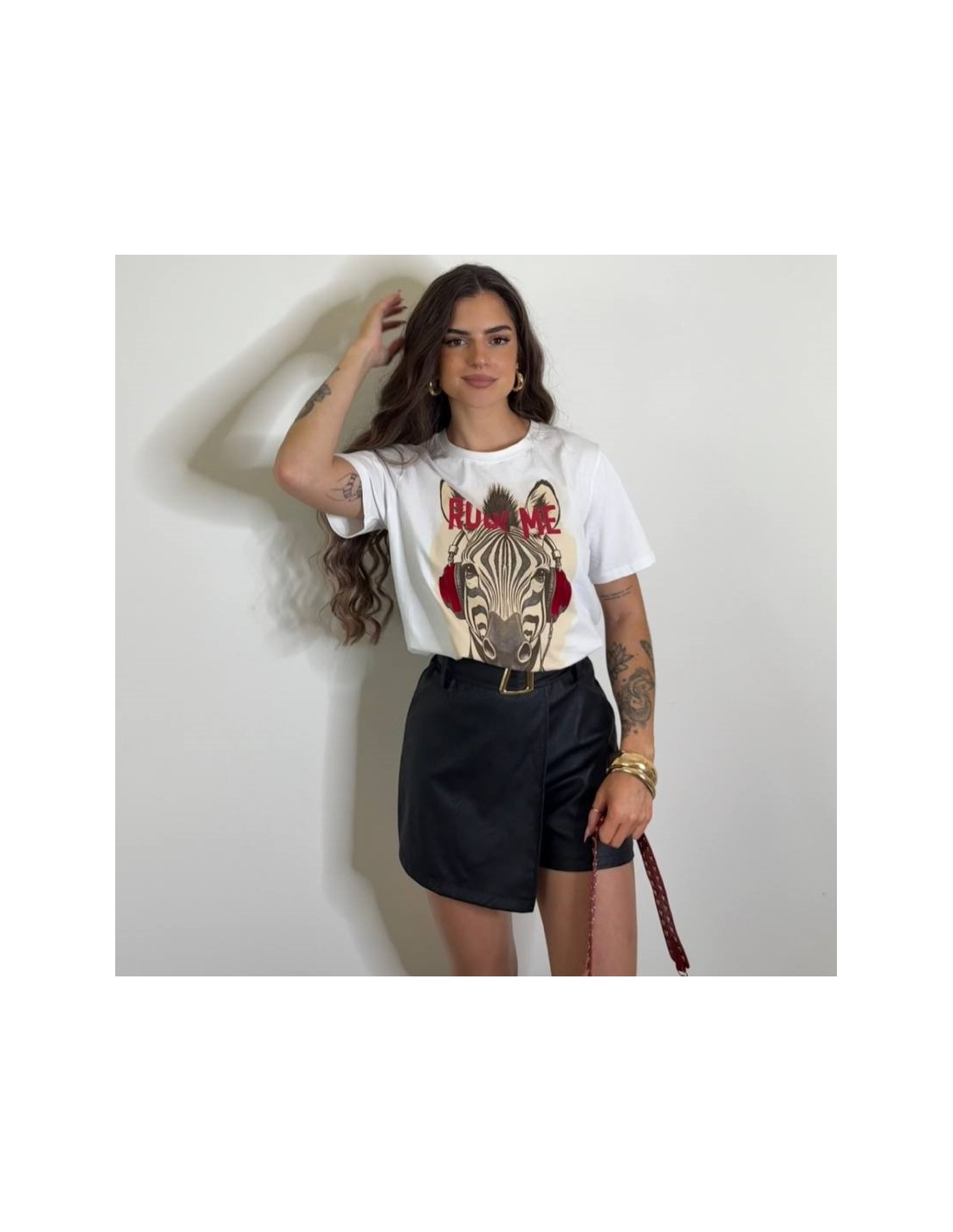 Falda pantalón efecto piel con cinturón incluido. De tiro alto. Corte asimétrico en parte delantera.