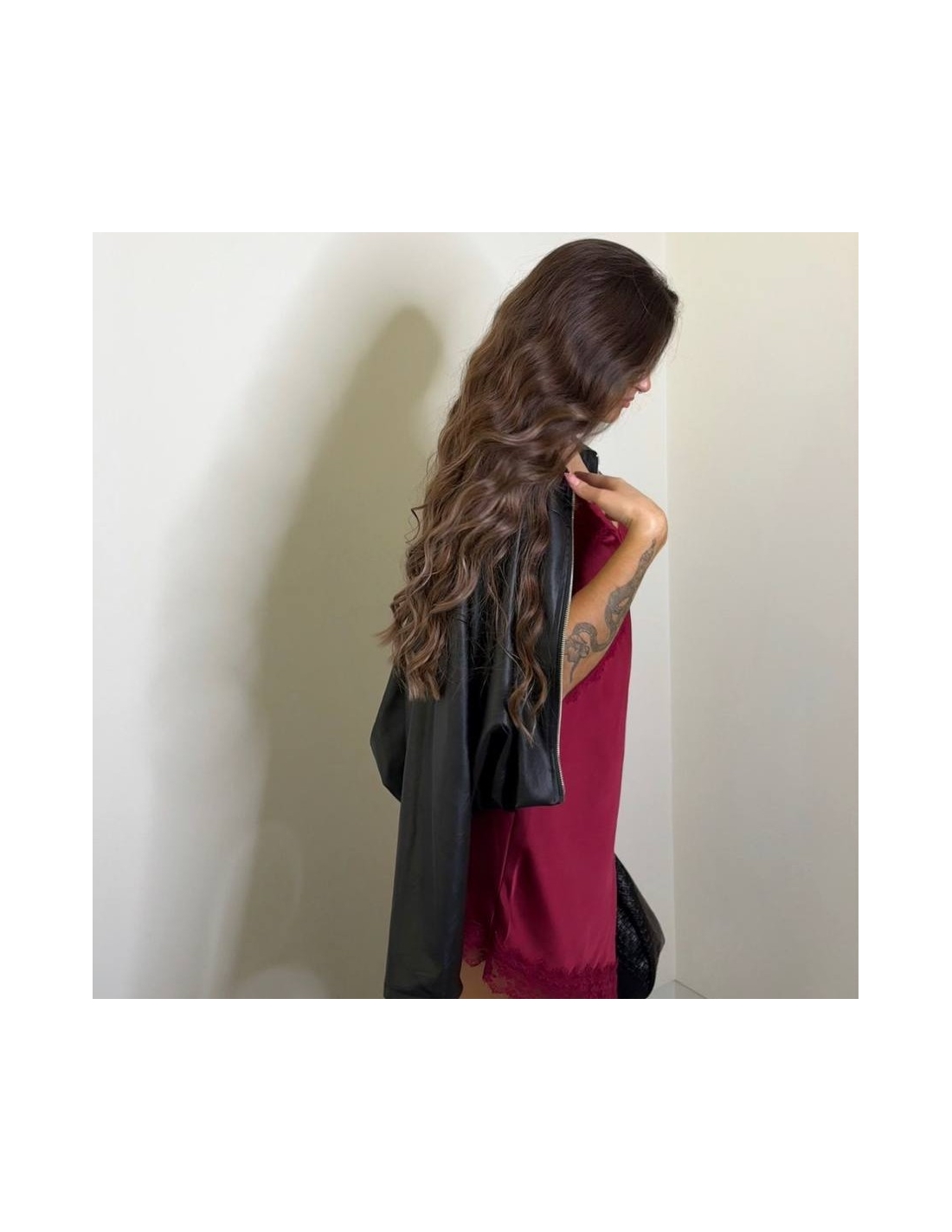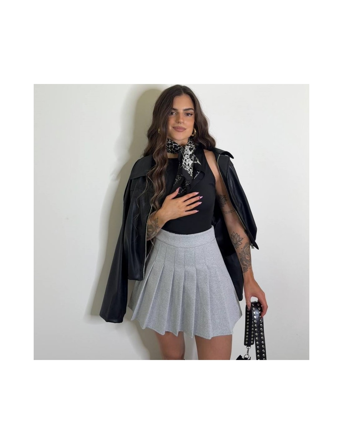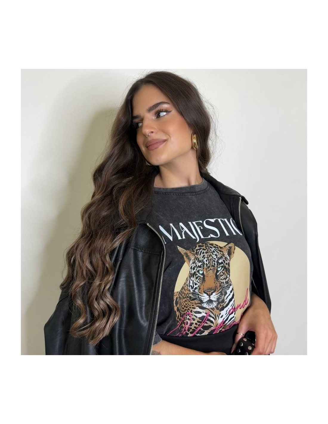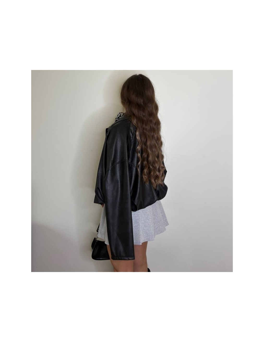 Bomber efecto piel negra. Con forro interior a tono. De manga larga. Cierre delanero con cremallera y botones. Talla única