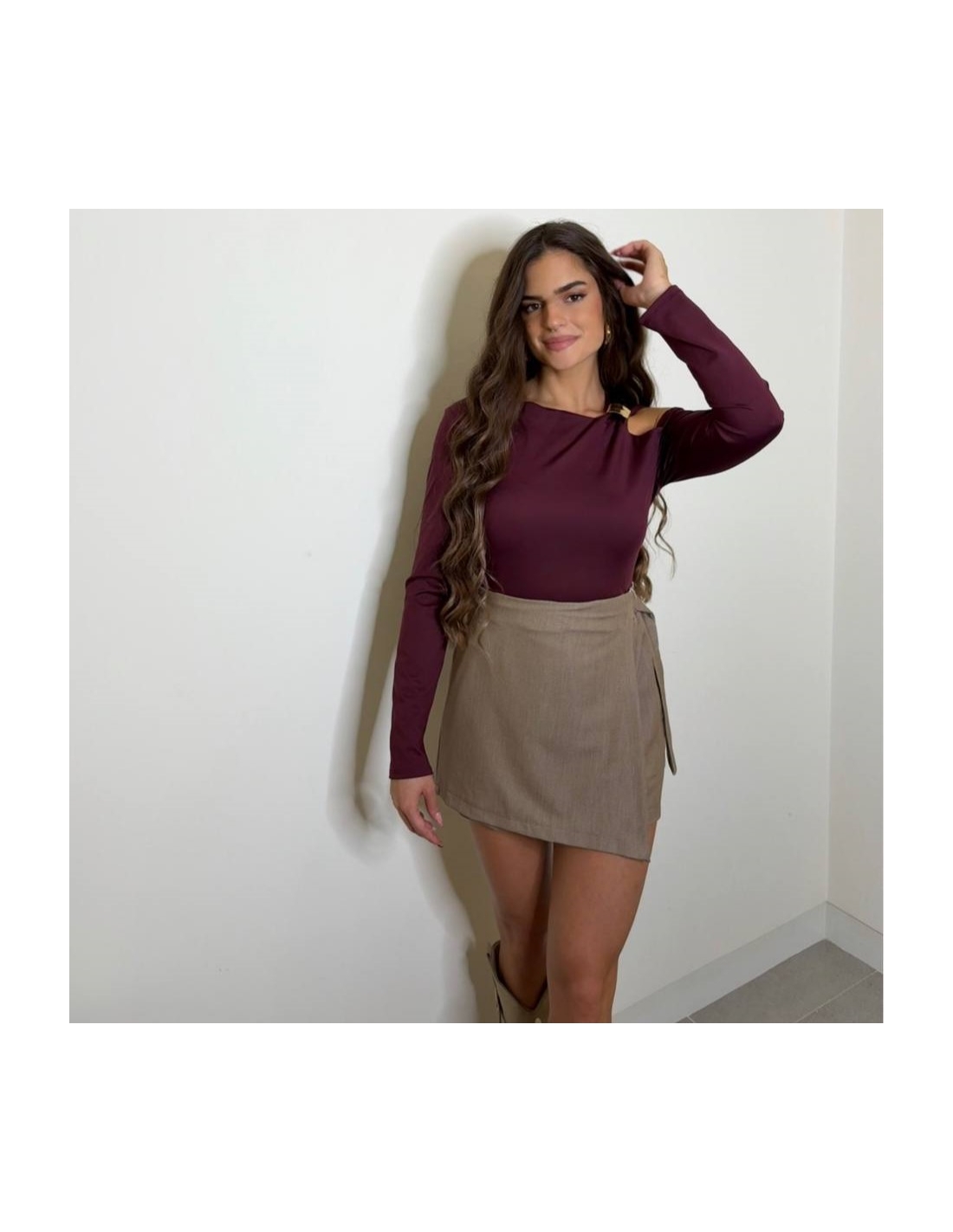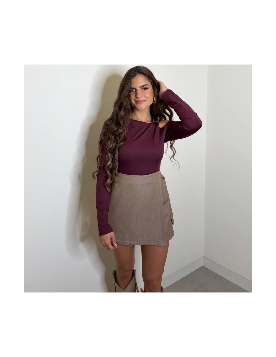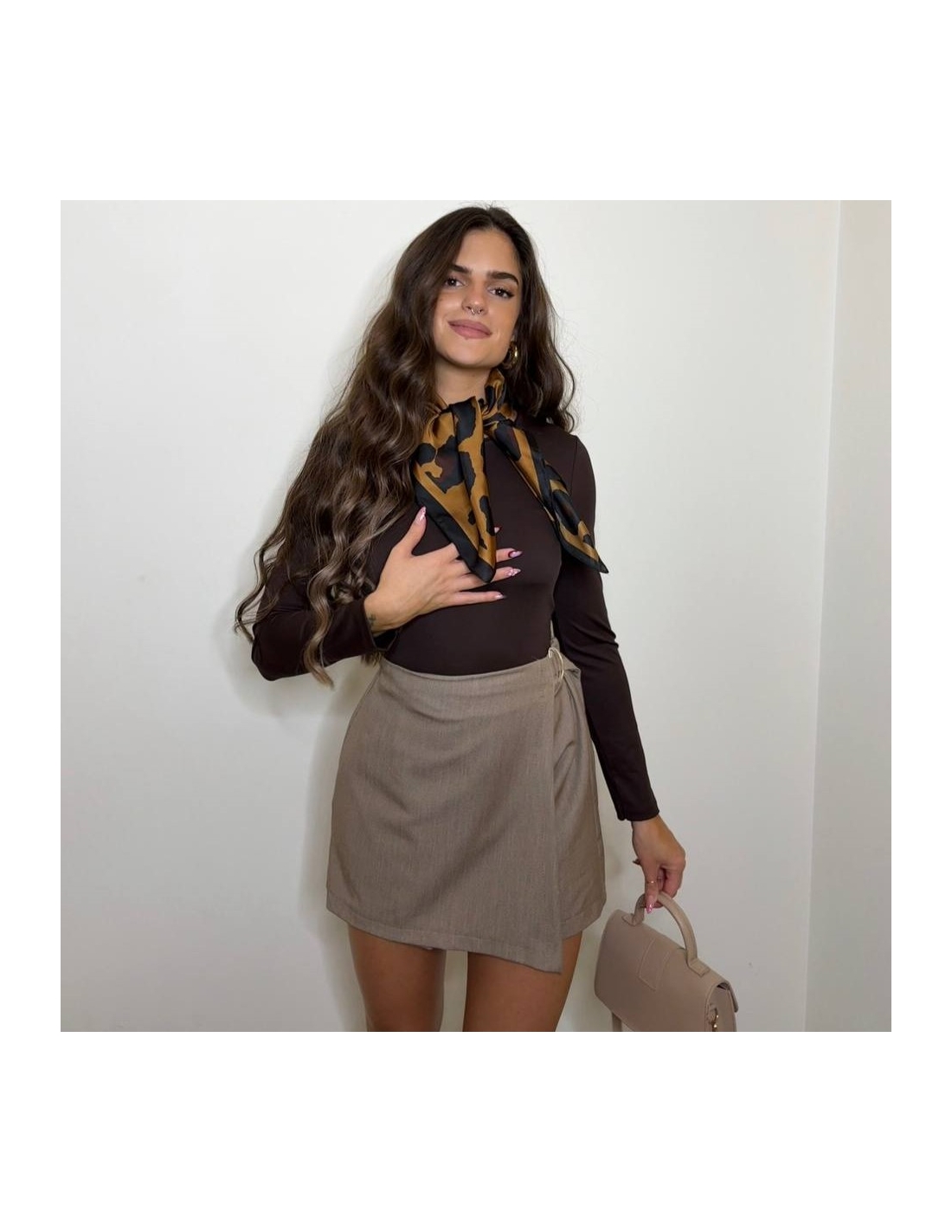 Falda pantalón en tono taupé. De tiro alto. Cintura elástica. Regulable en parte delantera con hebilla. Talla única
