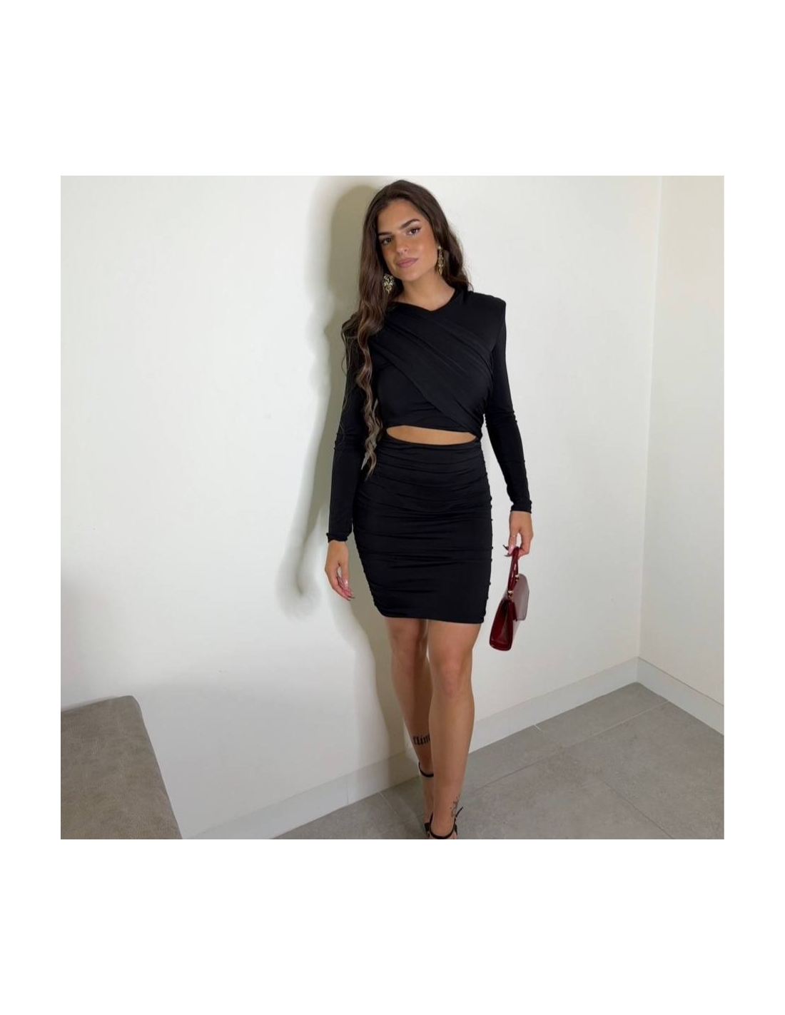Vestido con abertura delantera central. Fruncido. De manga larga. Doble tejido. Talla única