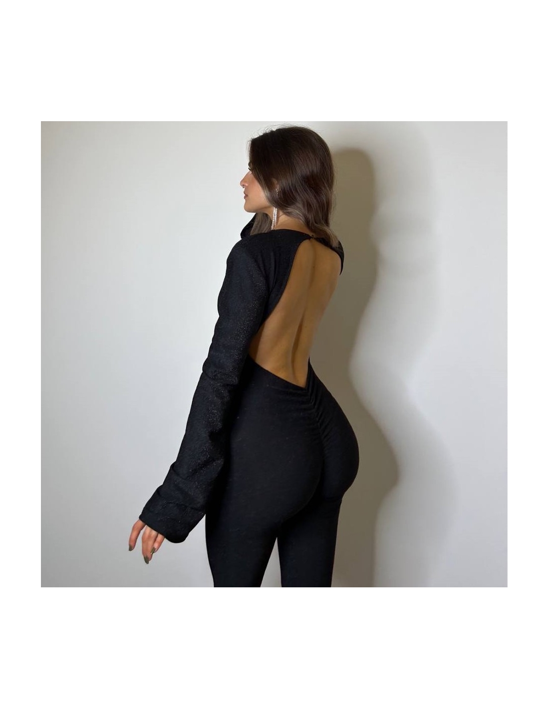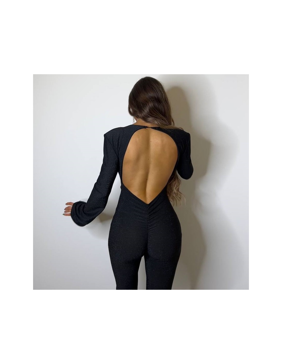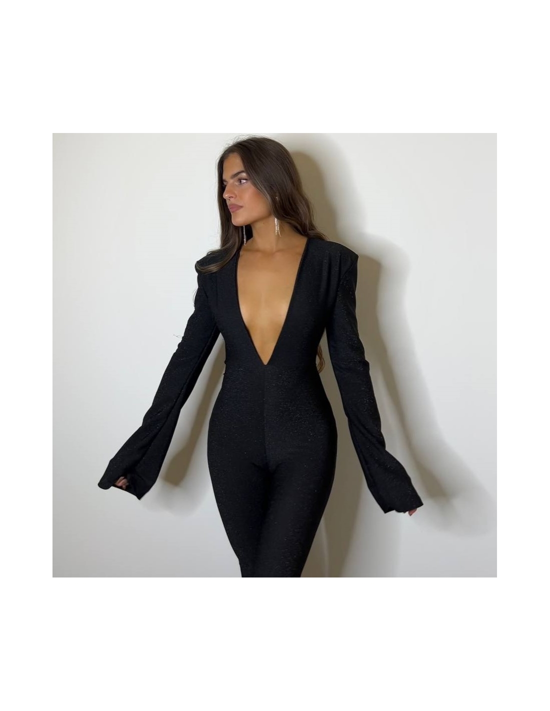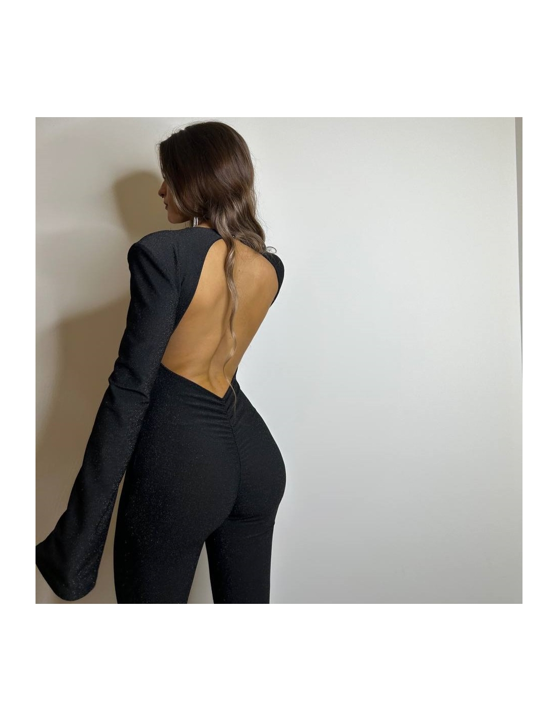 Mono hombreras lurex. Terminación de la manga acampanada. Espalda descubierta. Talla única.