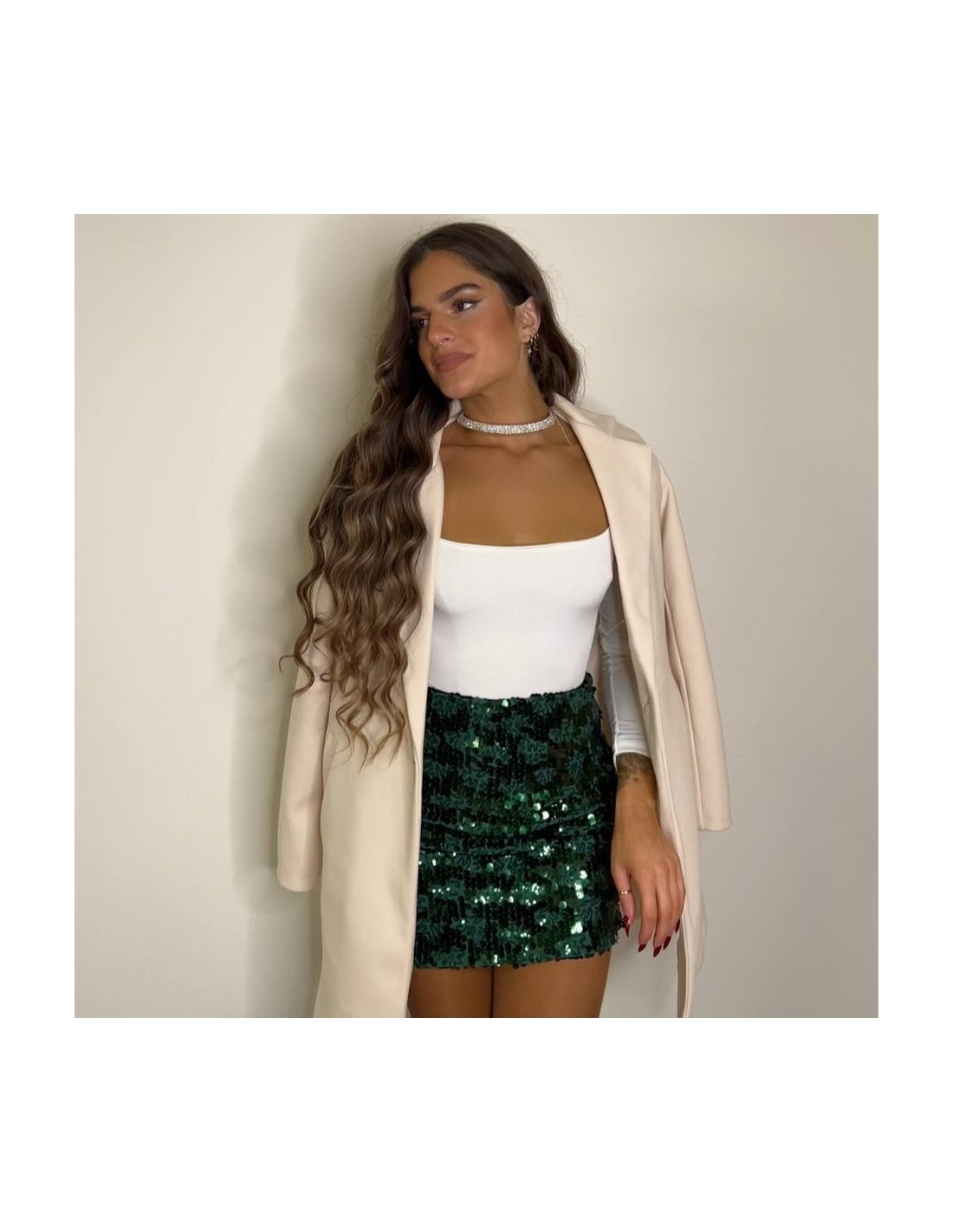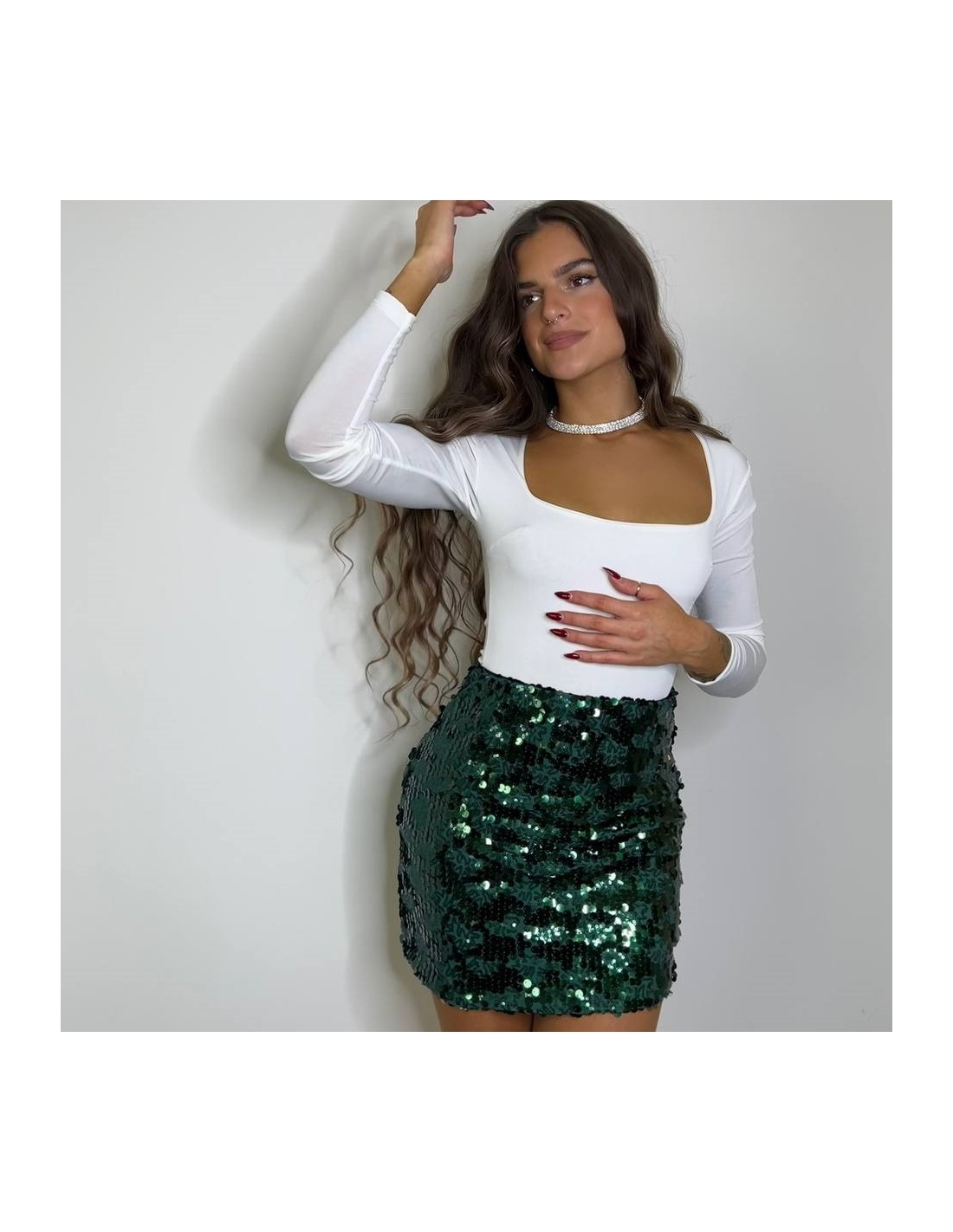 FALDA LENTEJUELAS VERDE BOTELLA