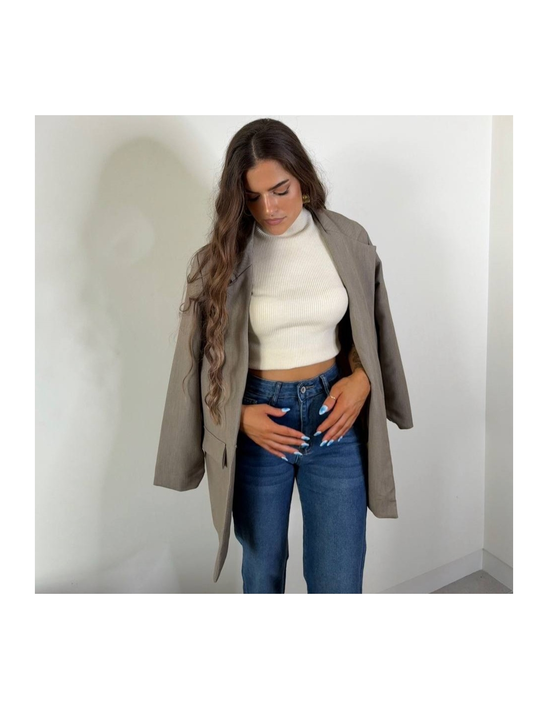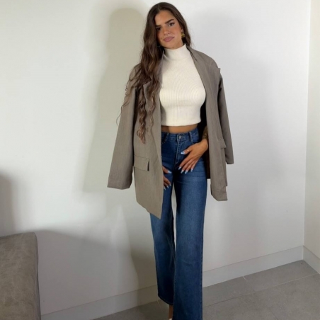 Jeans recto de tiro alto. Con bolsillos delanteros y traseros. Elástico.