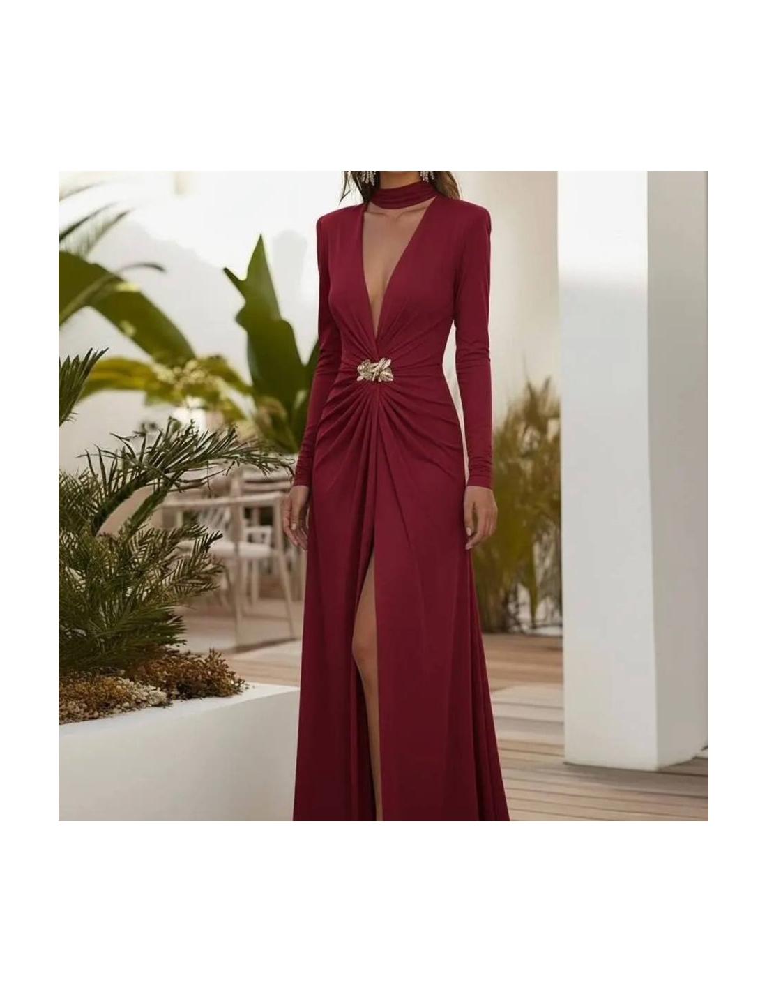 Vestido largo joya en tono vino. Talla única.