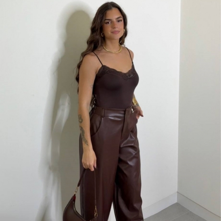 PANTALÓN EFECTO PIEL BALLOON CHOCO