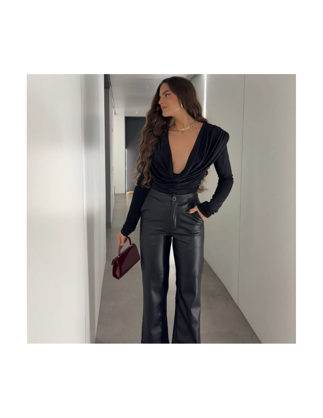 TOP HOMBRERA ESCOTE FLUÍDO NEGRO