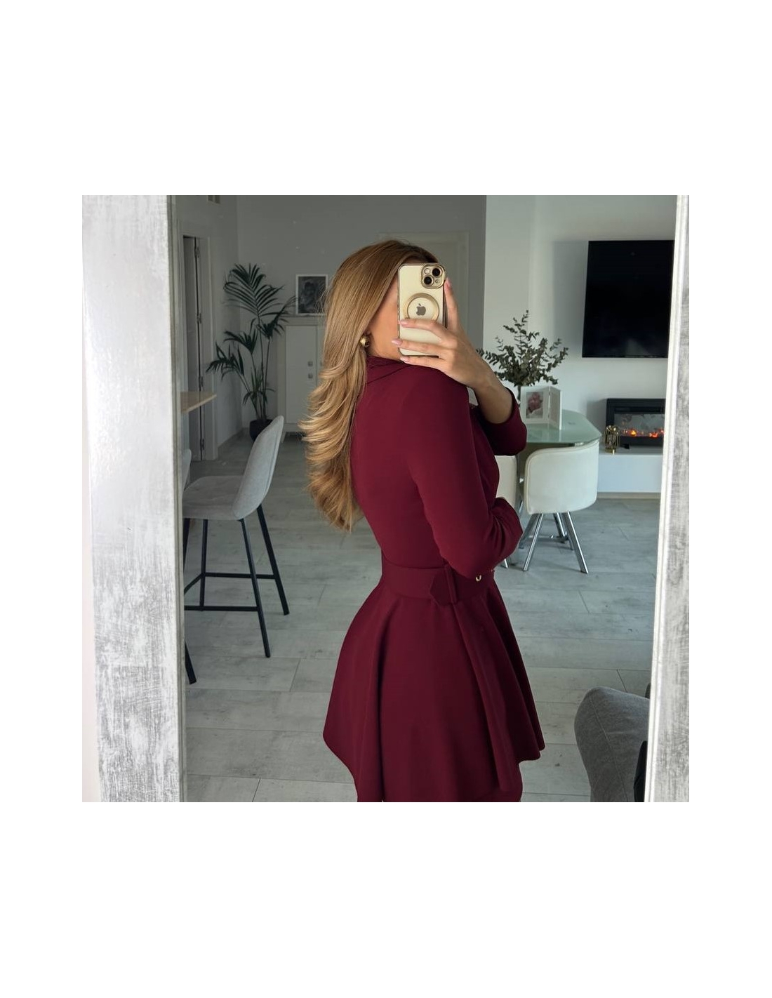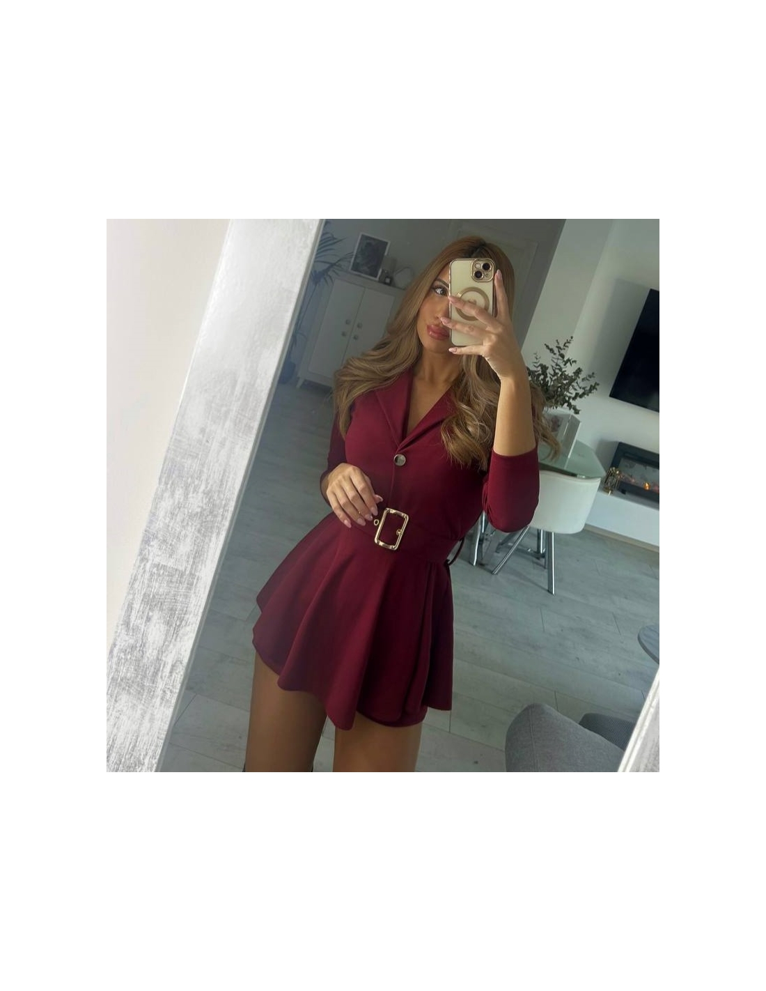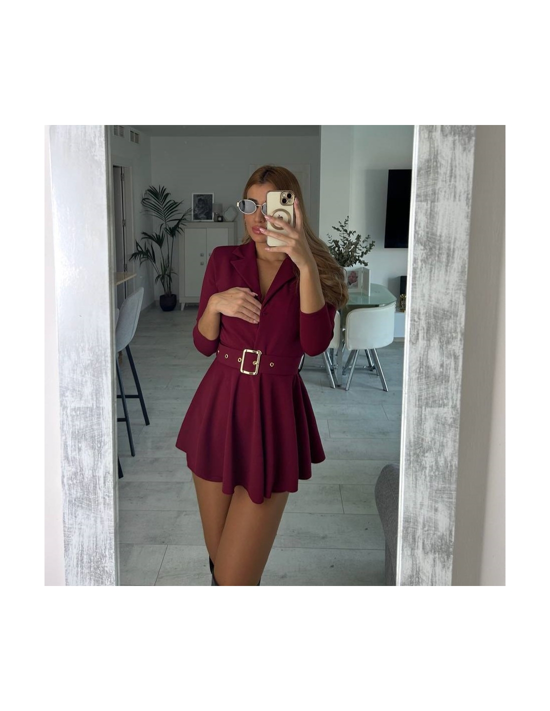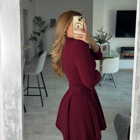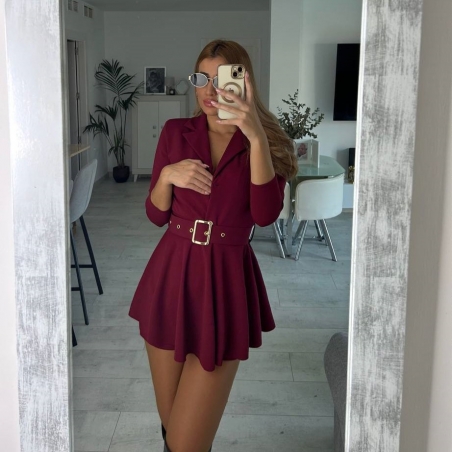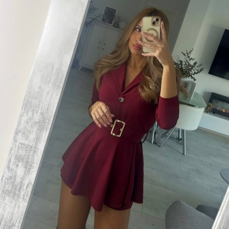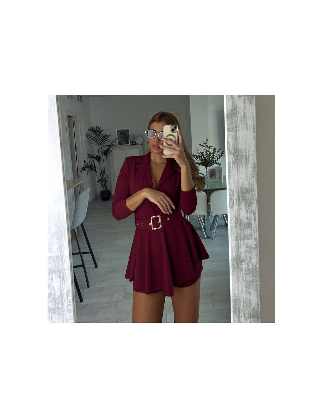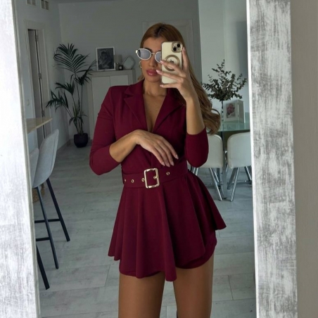 Mono vuelo corto con cinturón a tono. De manga larga. Escote en V. Cierre delantero abotonado. Talla única